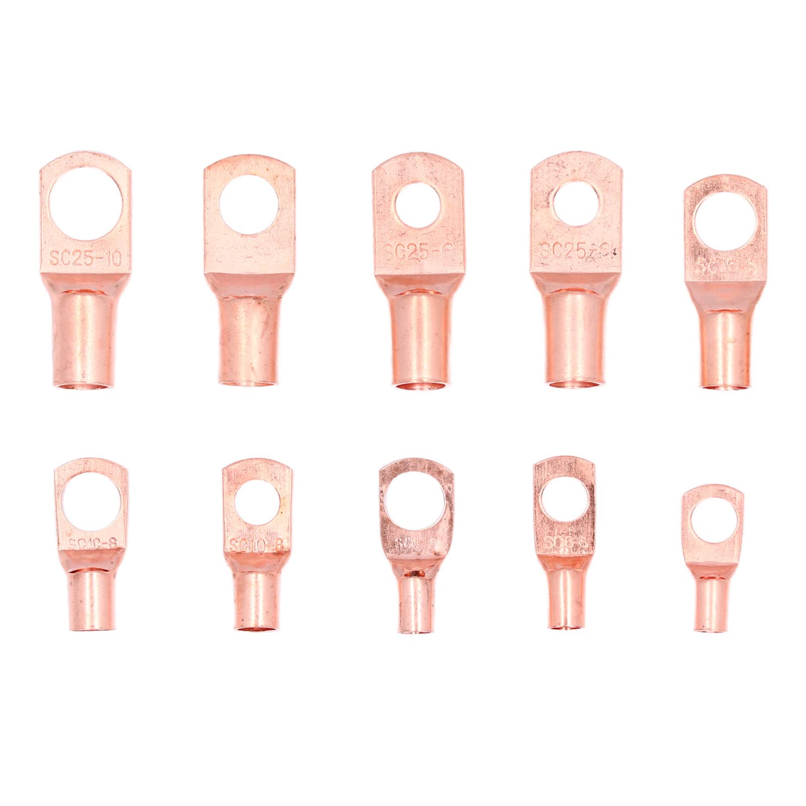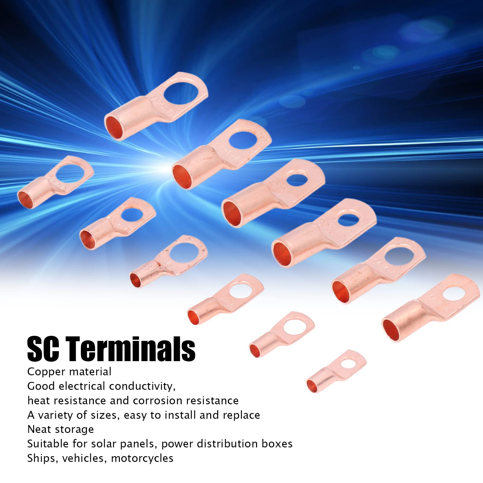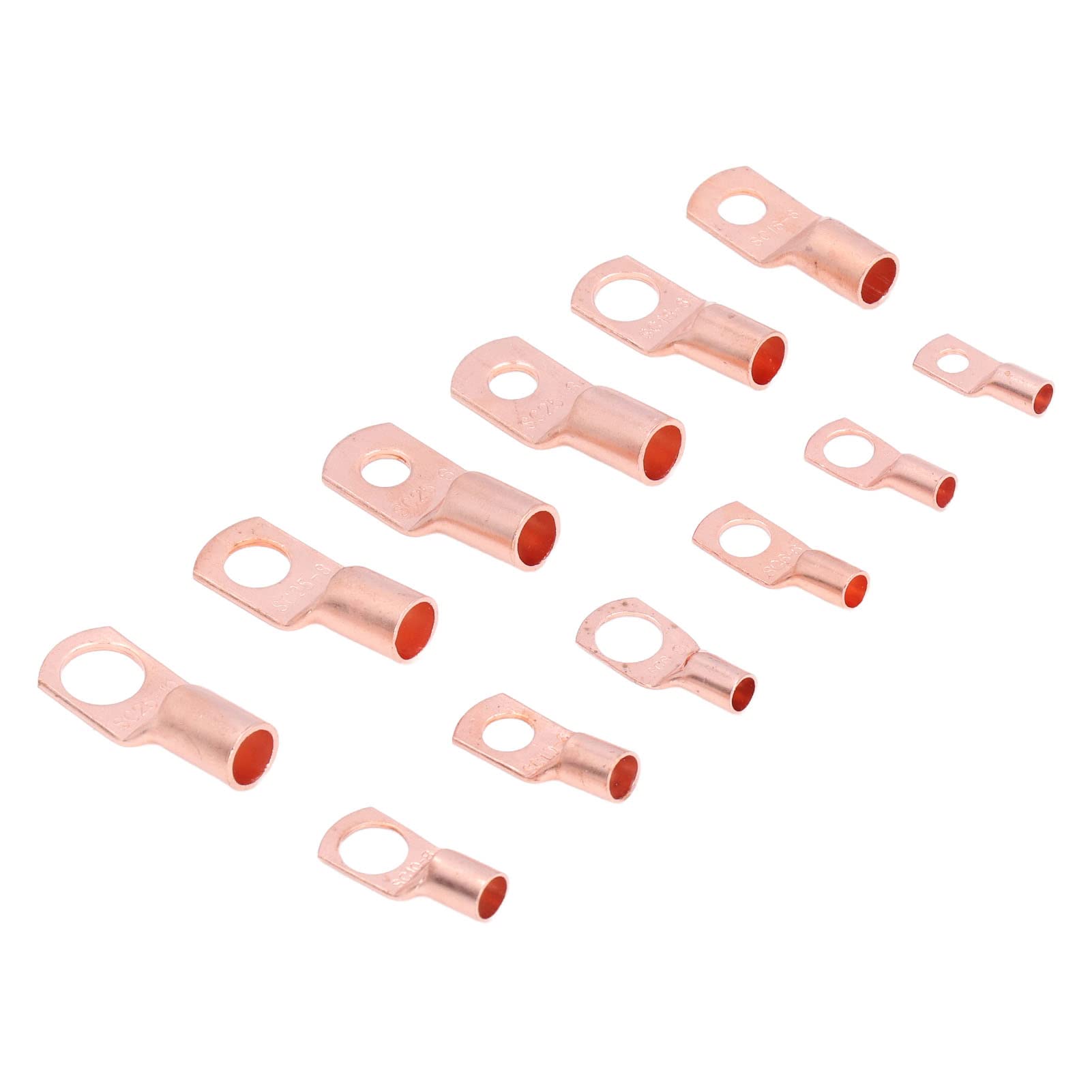 Description Specification: Type: Copper Battery Cable Ends Material: Copper specification Quantity SC SC4-4 20 SC SC4-6 20 SC SC6-6 20 SC SC6-8 20 SC SC10-6 20 SC SC10-8 20 SC SC16-6 10 SC SC16-8 10 SC SC16-10 5 SC SC25-6 10 SC SC25-8 10 SC SC25-10 5 Package List: 170 x Copper Battery Cable Ends Note: to electricity safety when installing and using.