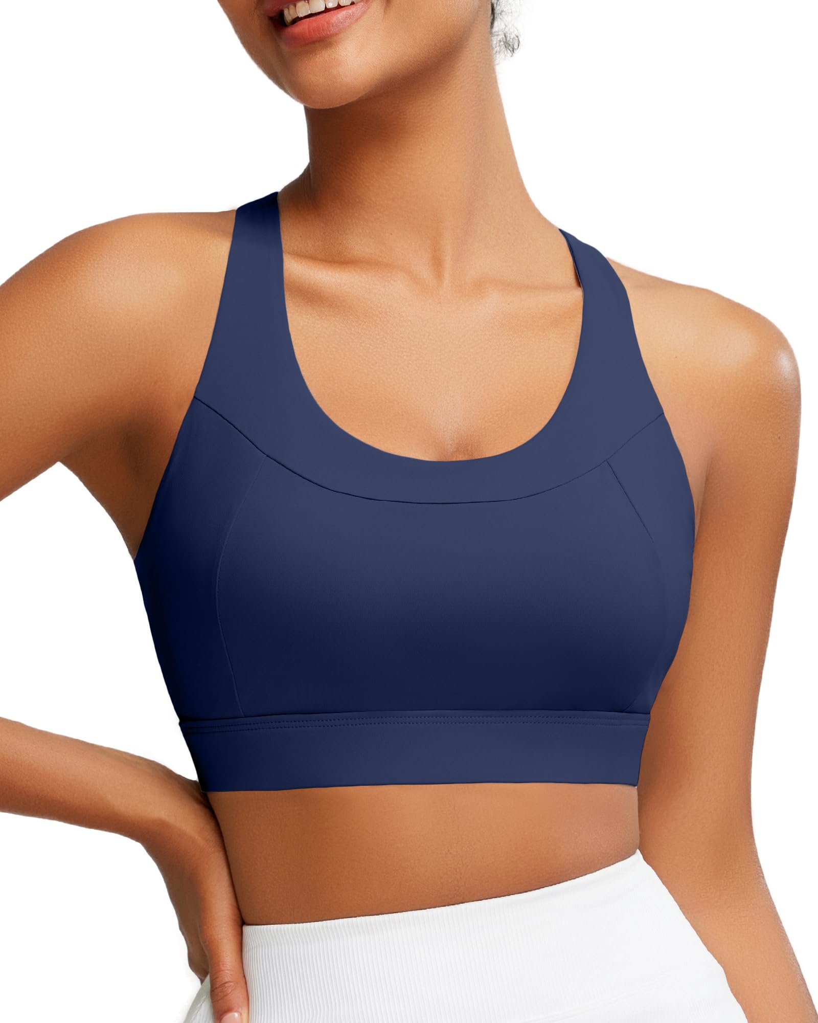 HIGH SUPPORT DESIGN:RUNNING GIRL sports bras for women detailing gives the U-neck womens sports bras high support its signature style.But it doesn't just look good,it's hard working.And the running sports bra for women wrapped in durably soft performance stretch fabric keep you comfy and supported.The cotton-like meterial,soft and comfortable to wear.High support sports bras for women let you twist with ease,running bras for women high impact design offers a extra back support.