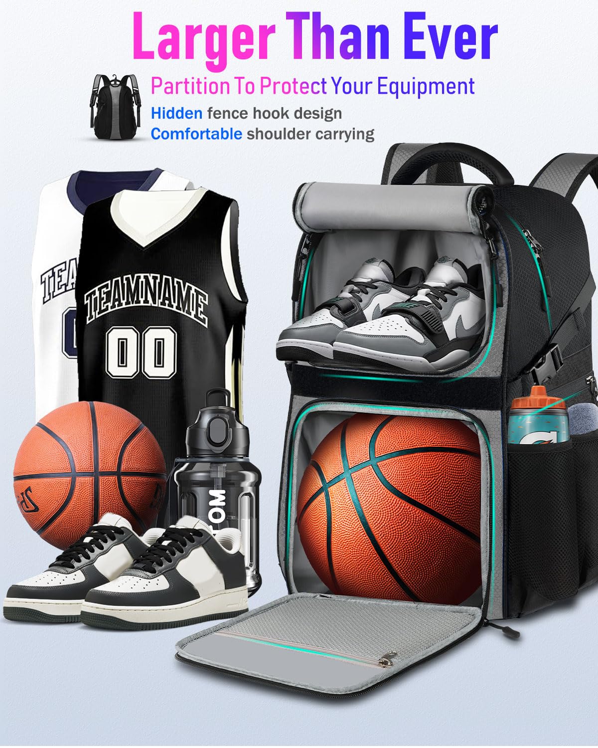 Tear-resistant Material and High-end Workmanship: The basketball backpack uses waterproof nylon fabric, metal accessories, and reinforced stitching. It can easily meet all your basketball game travel needs. Also a great gift all basketball player/ lover