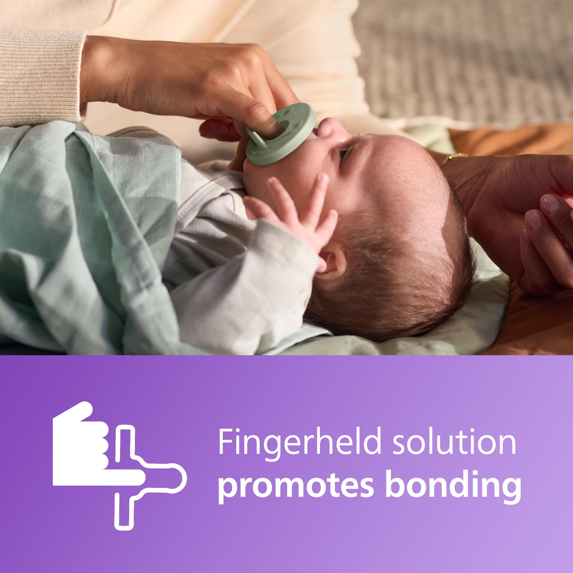 Fingerheld solution: uniquely designed so that you can place your finger in the nipple. This helps you create an even stronger bond by helping your baby suckle