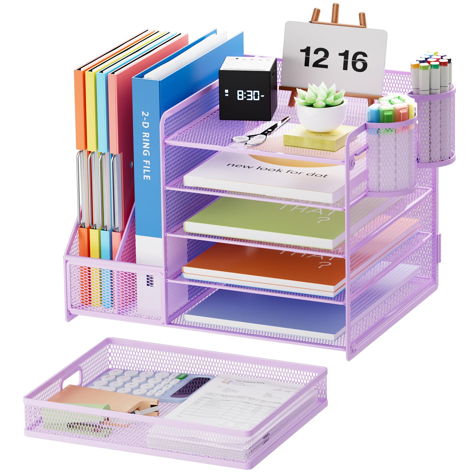 【Ideal Desk Organizer】Marbrasse newly releases the desk file organizer! The humanized office organization owns 5 sliding trays + 2 Magazine Holders + 2 Hanging Pencil Holders + 1 sliding drawer which tidies up your desktop and is convenient to your office! All the designs specialized to comply with your office, such a perfect supplies desk organizer must be the best choice for your office accessories