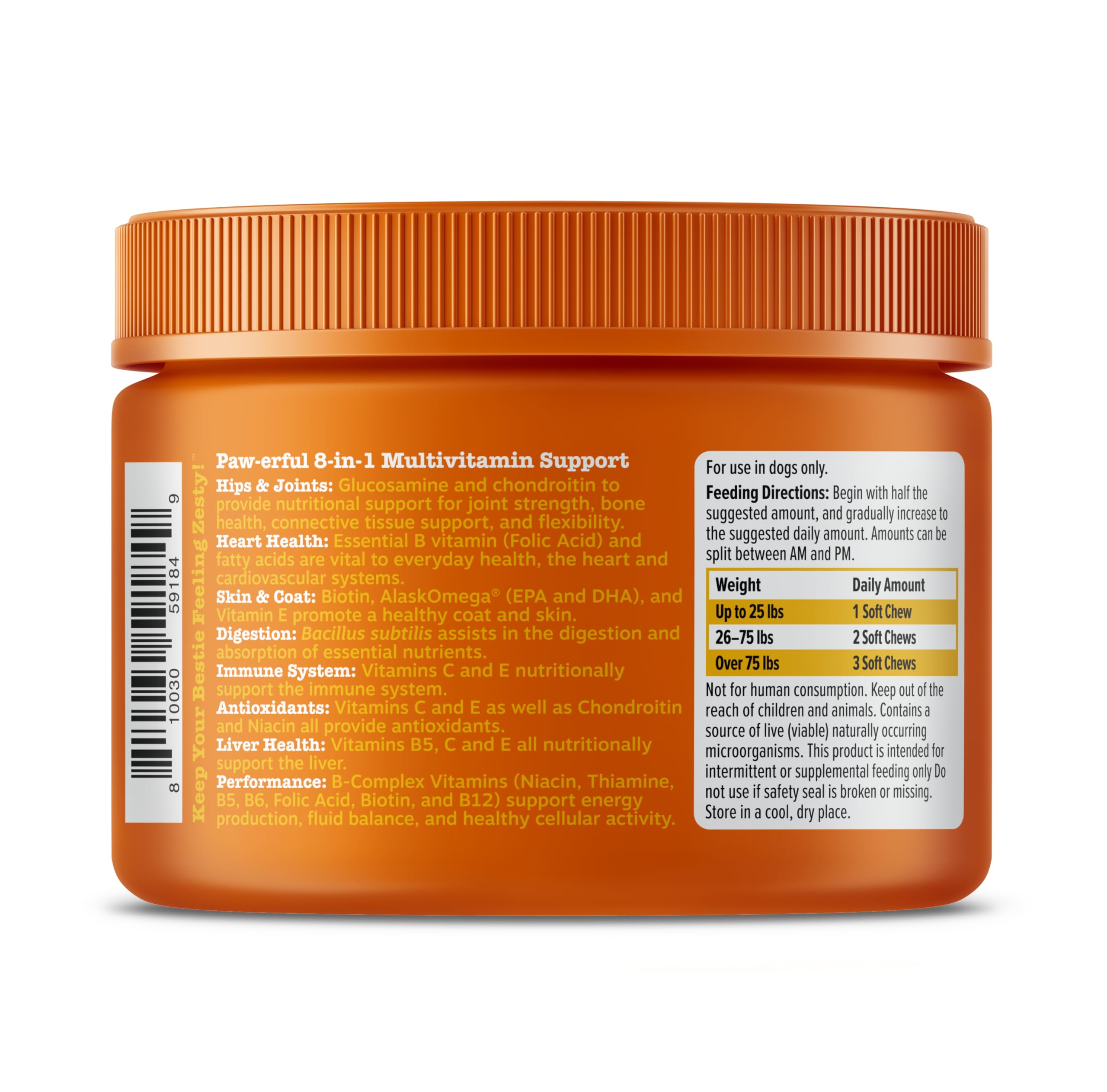 ADVANCED 8-IN-1 FORMULA: Zesty Paws 8 in 1 Multifunctional Bites include premium ingredients for physical performance, joint support, heart, immune, skin, liver, and gut health