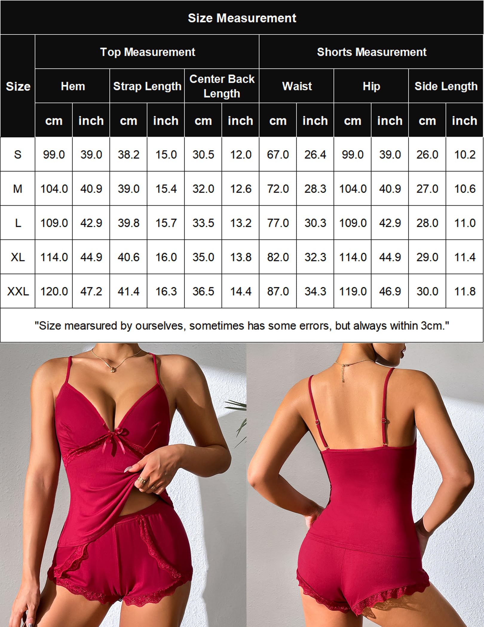 ใPackage Contentใ: 1 x Cami Pajama Top 1 x Lace Trim Pajama Shorts