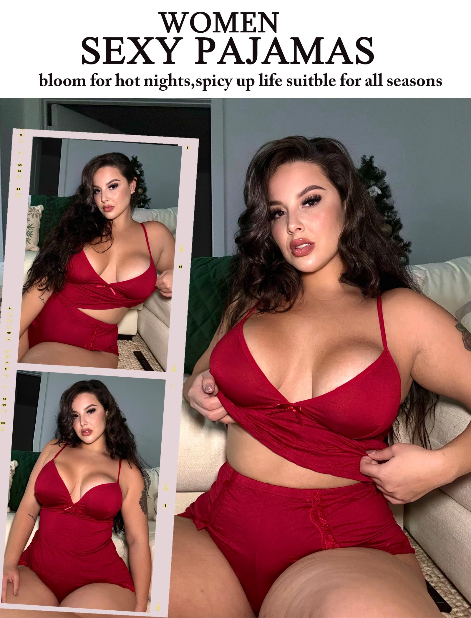 ใCami Pajamas Setใ: Sexy pajamas for women with shorts is designed with v neck and with bow decoration ,adjustable spaghetti strap for easy wearing and adjustment to the comfort position you want, make you comfort, sexy in the night.