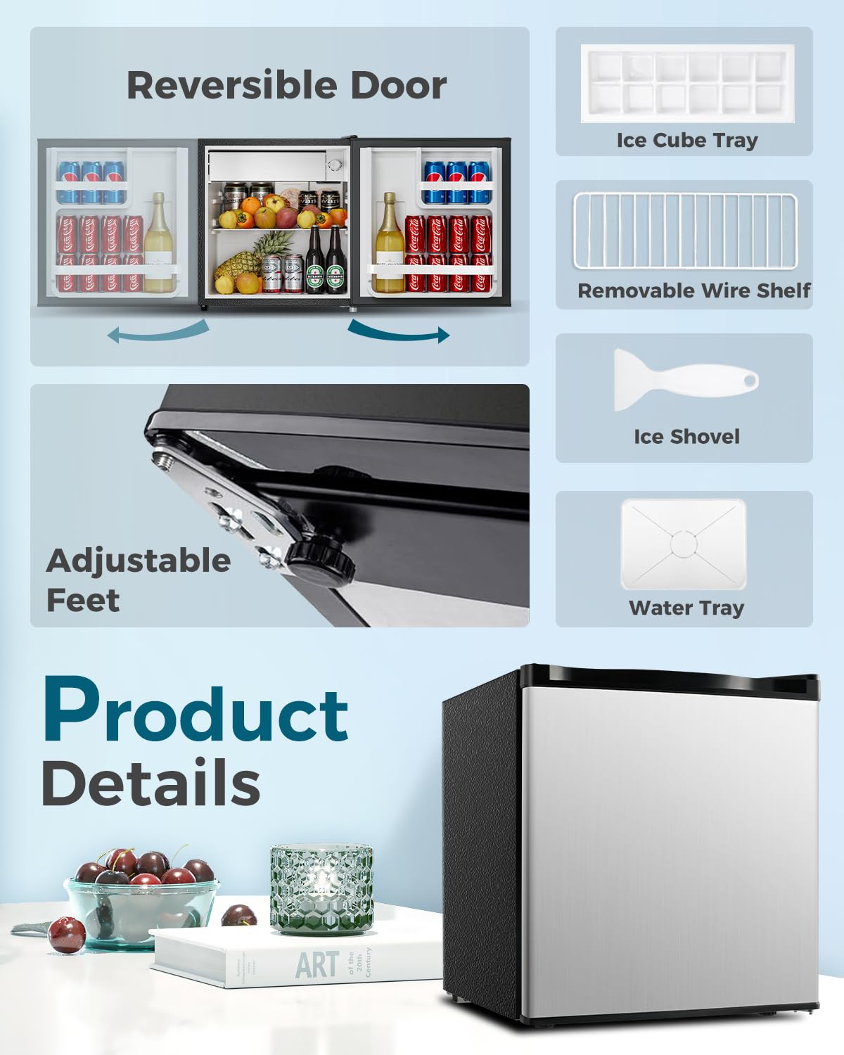 Flexible Placement & Reversible Door - Our small refrigerator with freezer delivers maximum versatility through adjustable feet and a reversible door. Seamlessly fitting under desks or on countertops, this space-saving solution excels in tight spaces. This practicality makes it an excellent addition to your home or a thoughtful gift for friends and family looking for a reliable portable refrigerator!