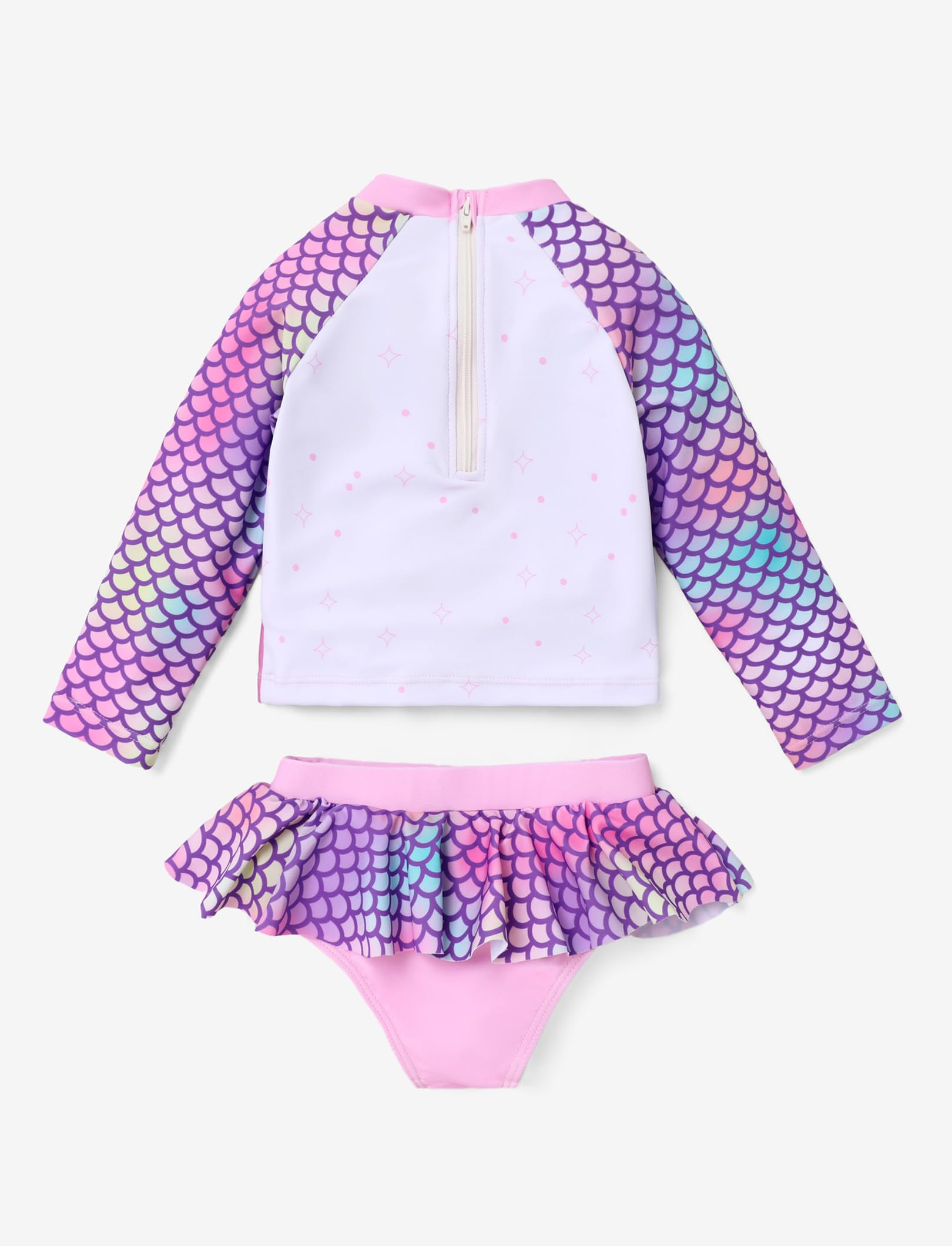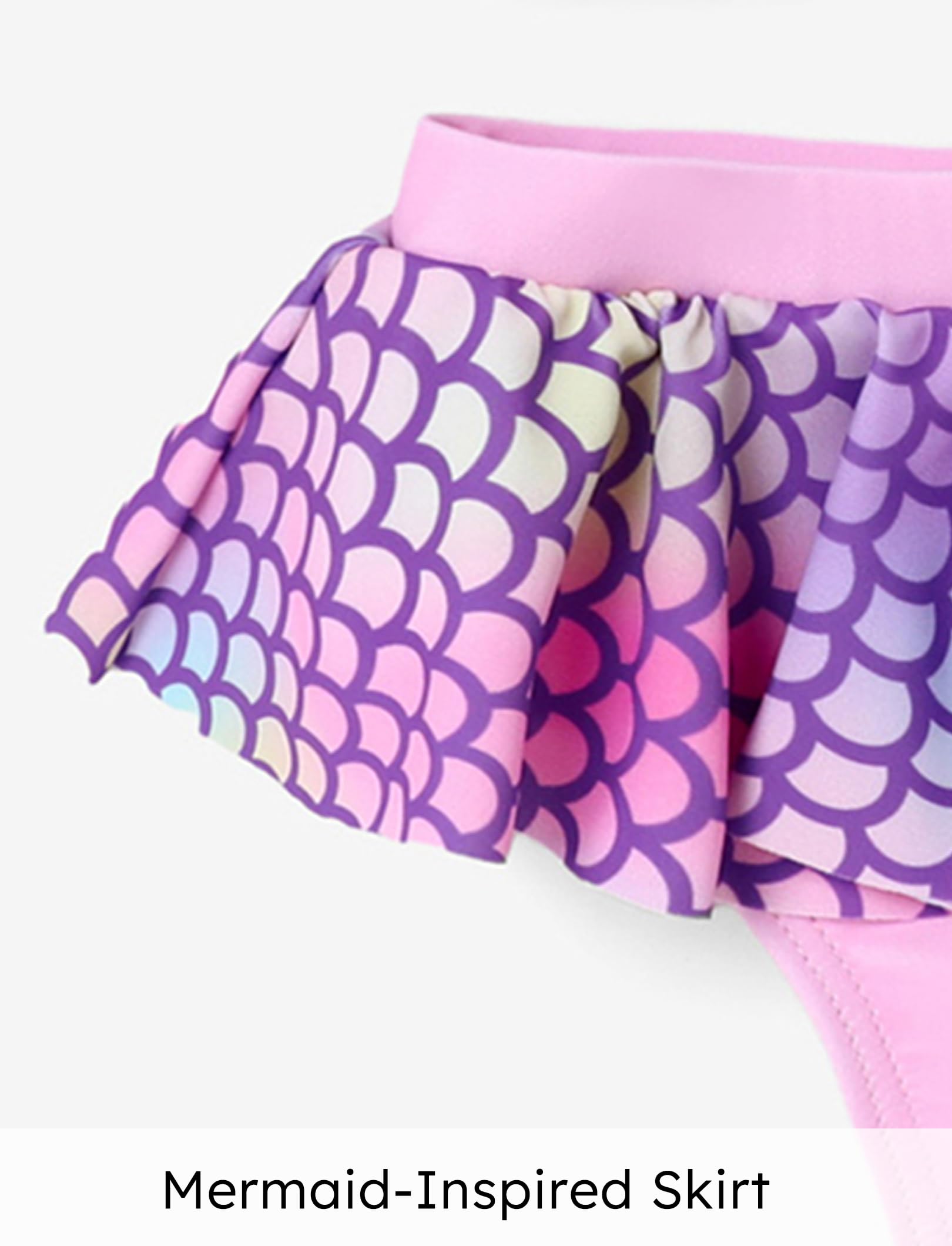Adorable design: This tankini set features a stunning pink upper body with a long-sleeve design. The ruffles add a playful touch to the design, while the fish scale pattern on the lower body triangle swimming trunks adds a fun and vibrant look.