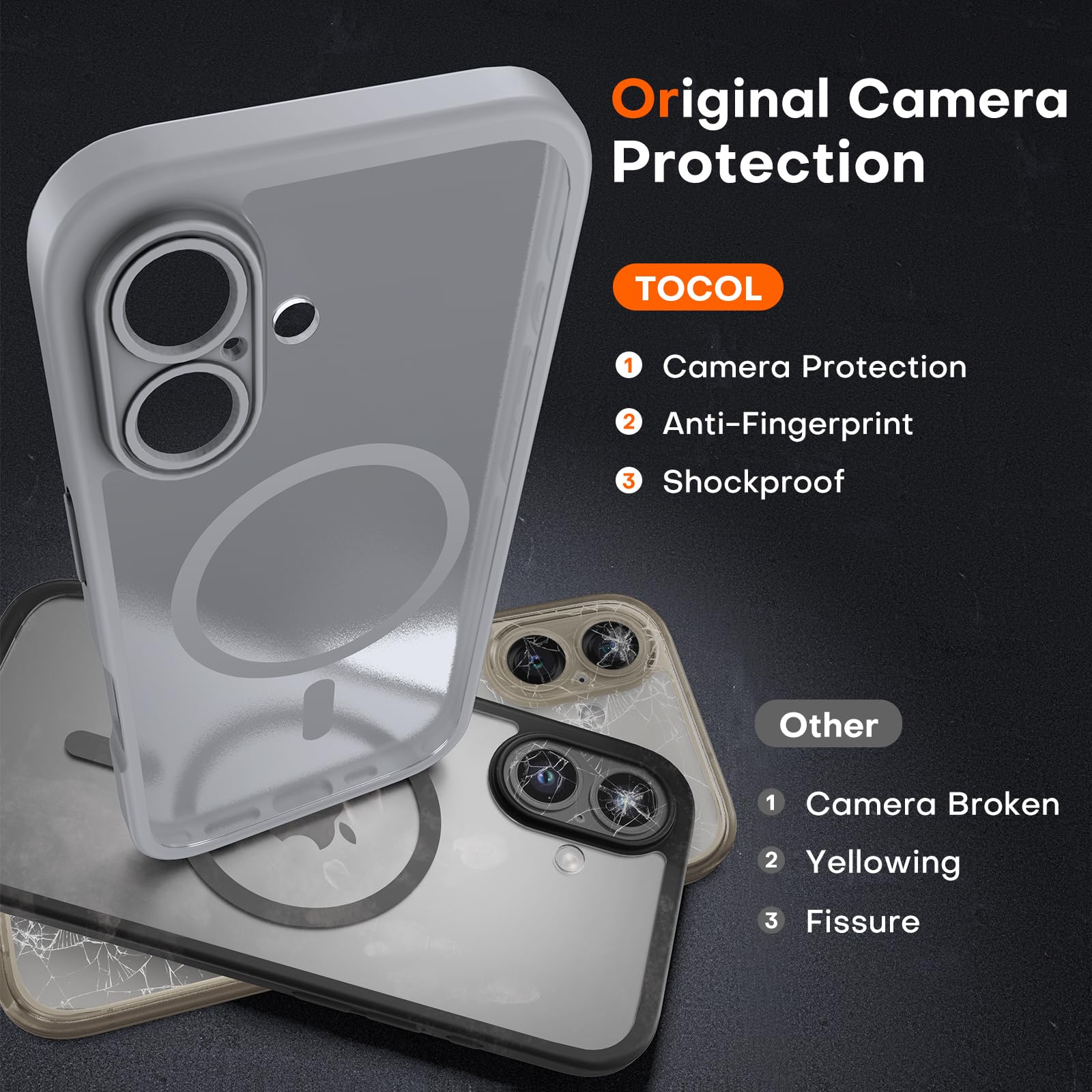 Designed for Camera Safety: TOCOL case for iPhone 16 upgraded camera surround protection, integrated with the case. The camera frame is 0.8mm higher than the camera lens, which can protect your most precious camera lens from scratches and collisions
