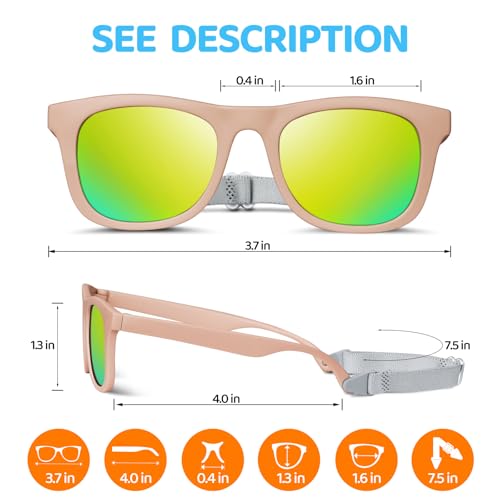 【Safety】 RIVBOS baby sunglasses are made with non-toxic TAC lenses and TR90 frames, ensuring they are completely safe for newborns, infants, and toddlers to wear.
