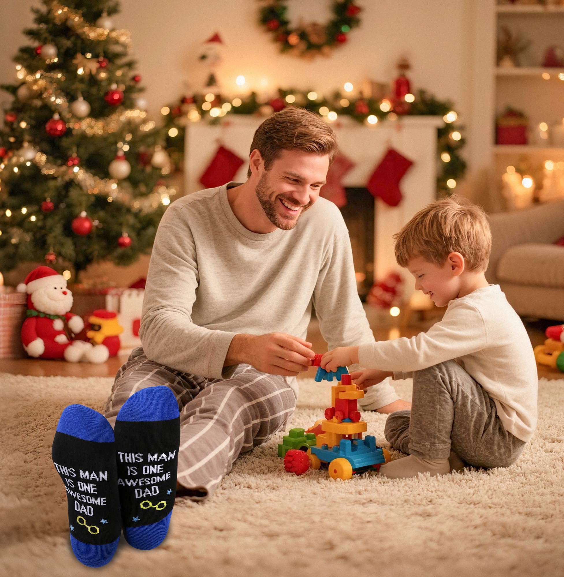 Dad Christmas Gifts:Christmas gifts for dad,dad christmas gifts from daughter,dad gifts,christmas presents for dad.This funny socks come with knitting lettering and pattern on the bottom.All the words and patterns are stitched directly into the socks,so they won't wear out or fall off easily.The funny socks gifts will bring happiness to everyone,best gifts for dad for christmas