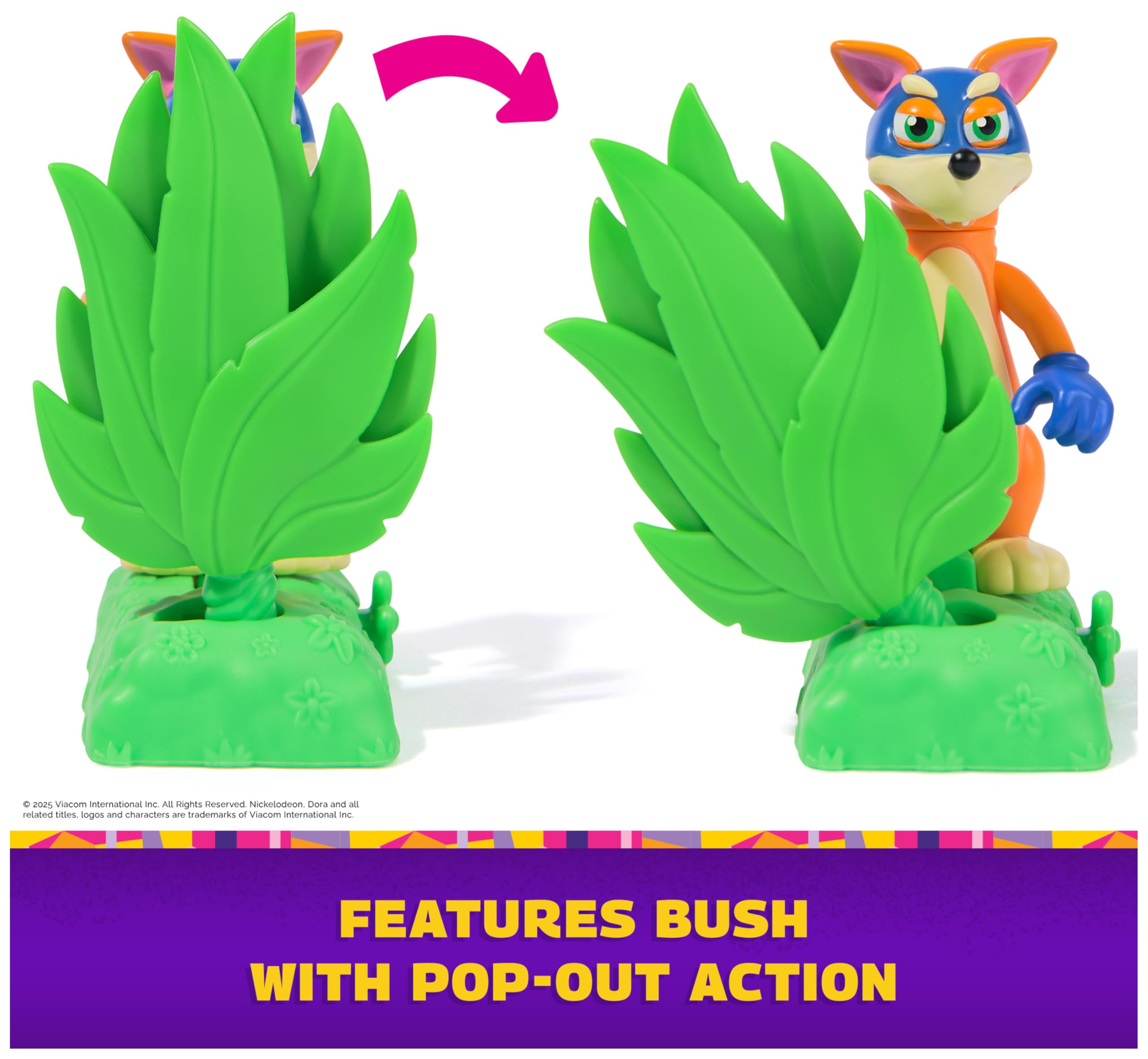 Surprise Pop-Out Feature: Set comes with a large bush accessory, that allows either figure to hide, then the bush tilts to the side, when a figure is placed & moved forward, to “swipe” the present