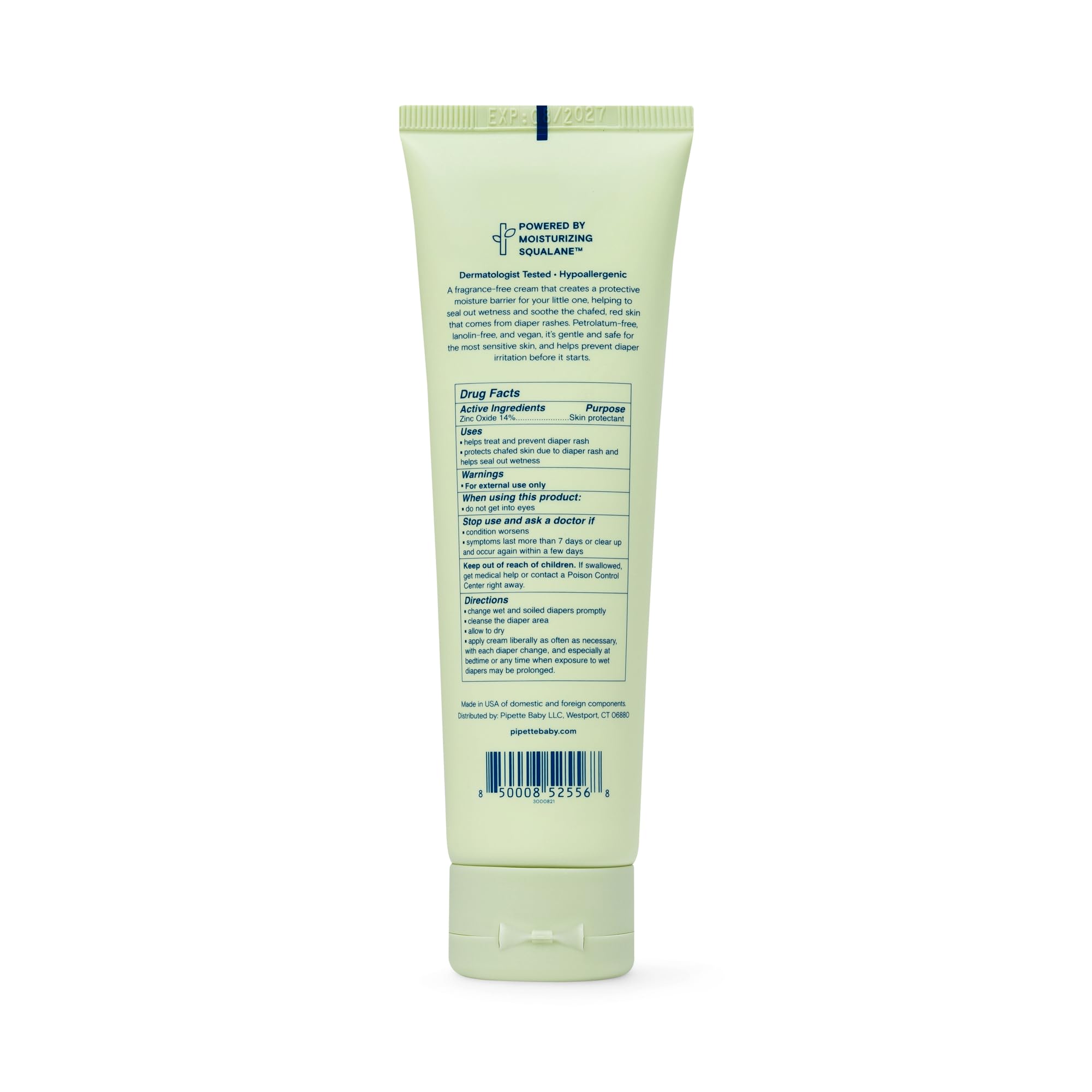 Pipette Baby's fragrance-free Diaper Rash Cream creates a protective moisture barrier for your little one, helping to seal out wetness and soothe the chafed, red skin. Petrolatum-free, lanolin-free, and vegan, it’s gentle and safe for the most sensitive skin, and helps prevent diaper irritation before it starts. Bonus: our moisture-rich formula glides onto skin easily—and wipes off when you need it to. 14% non-nano zinc oxide creates a safe, gentle, and effective barrier to protect against and soothe the red, chafed skin of diaper rash. Deeply calms and moisturizes. Bisabolol, a plant-derived ingredient nourishes and comforts baby’s most sensitive skin. Baby Diaper Rash Cream replenishes what they’re born with.
