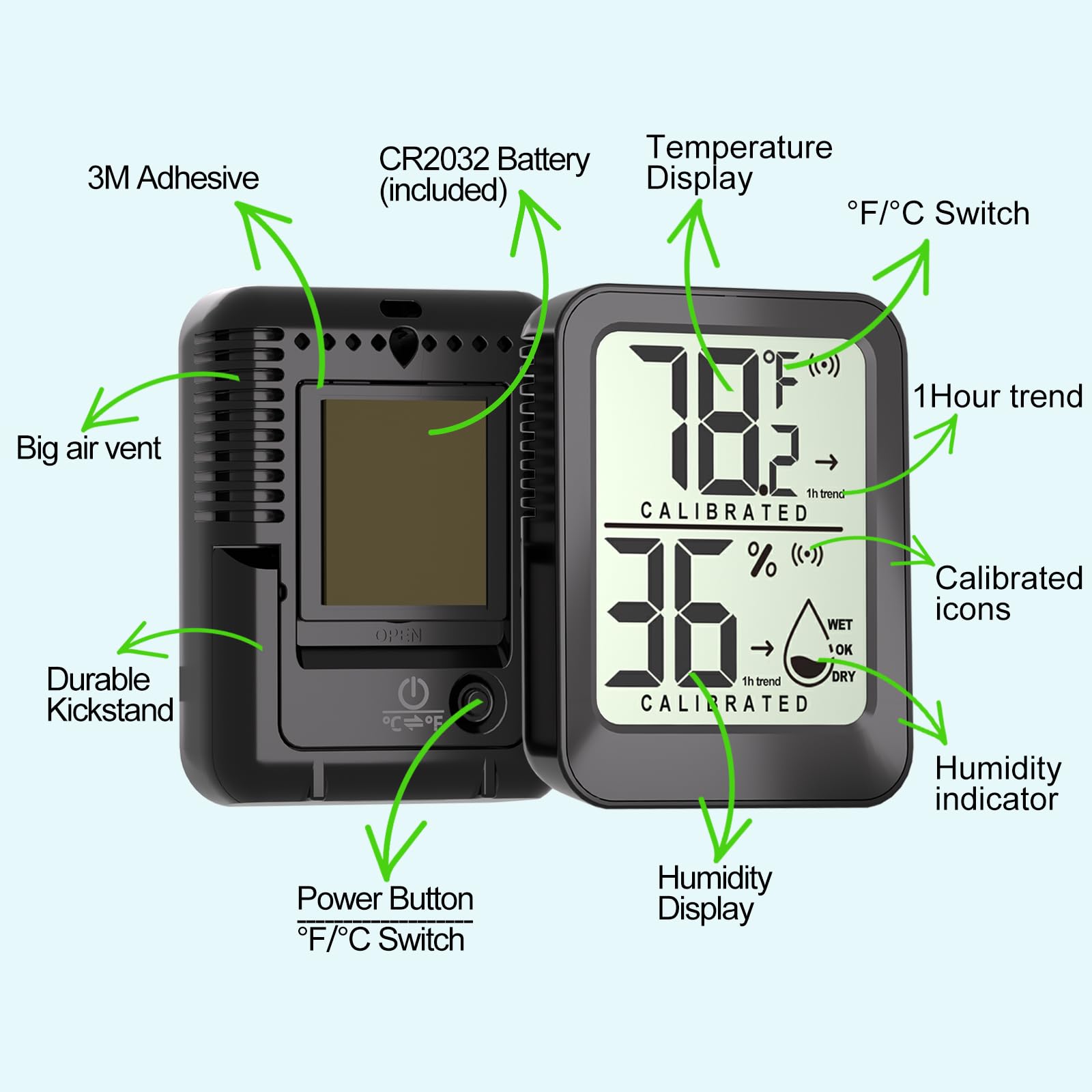 【Real-Time Room Humidity & Temperature Tracking 】This room thermometer humidity meter monitors indoor temperature and humidity instantly and show real time reading. Ideal for sensitive environments like baby room, living room, bedroom, office, garage, sauna room, bathroom, warehouse, greenhouse, basement, guitar case, refrigerater, vehicle, humidor, egg incubator, reptile terrarium, tortoise house, aquarium, hermit crab, snake tank, crawl and treefrog terrarium, indoor plants.