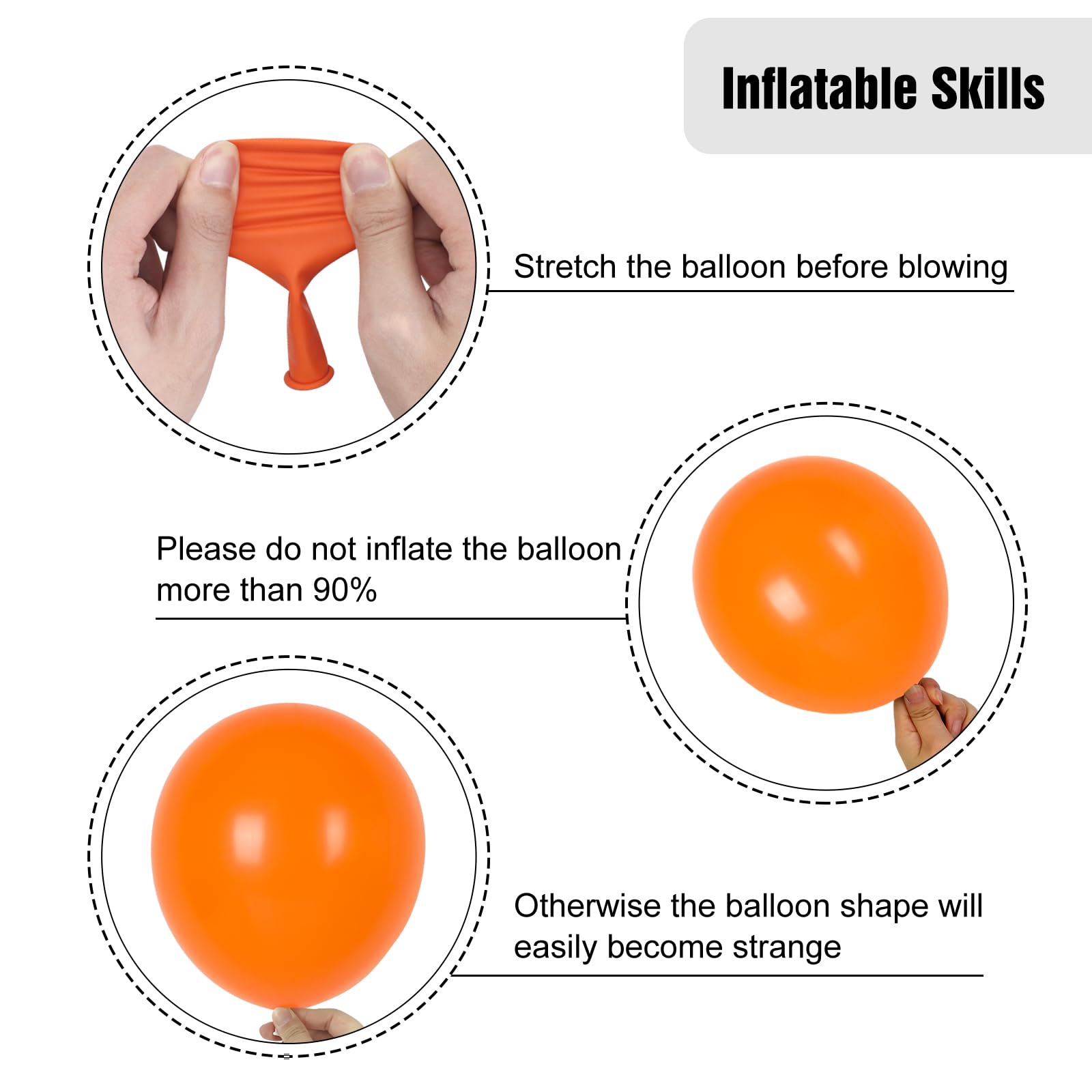 NOTES: There may be some latex odor when the balloons are taken out, You can dry it in a shaded and ventilated place, and do not place it in direct sunlight. Choking Hazard: Adult supervision is required. Keep uninflated balloons away from children.