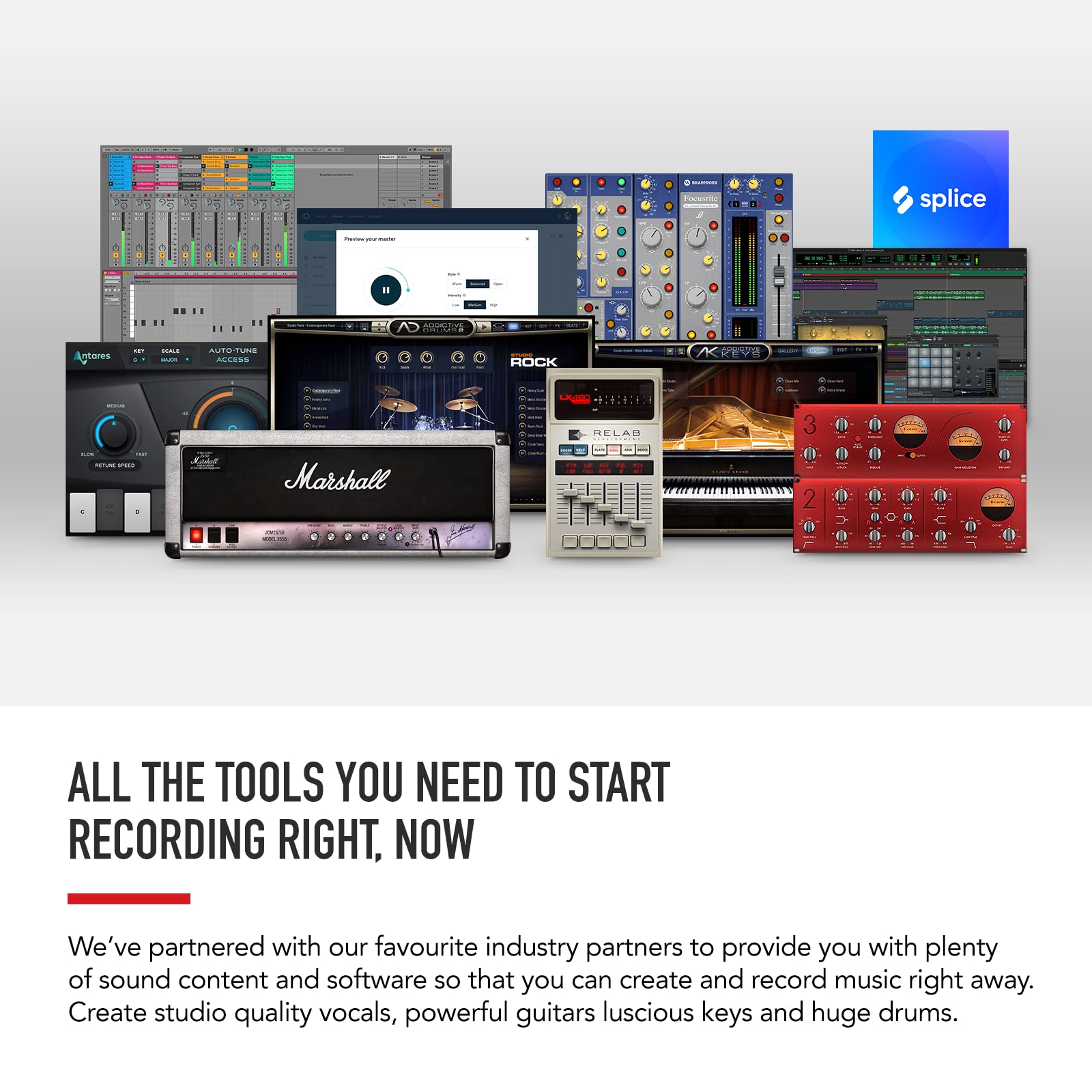 Everything in the box: Includes Pro Tools Intro+ for Focusrite, Ableton Live Lite, and Hitmaker Expansion: a suite of essential effects, powerful software instruments, and easy-to-use mastering tools