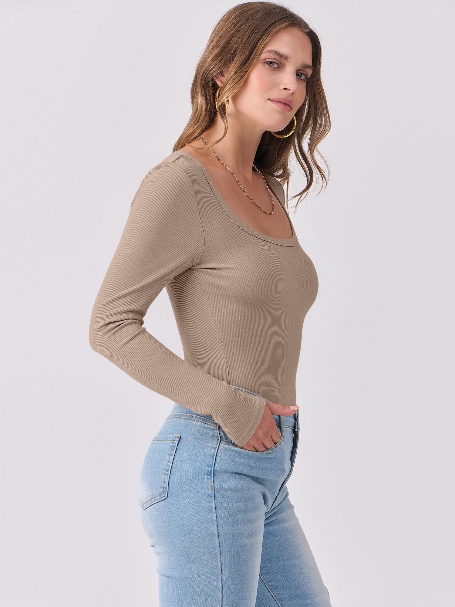 Features - Women's long sleeve shirts, scoop neck, ribbed knit, casual sytle. This women's basic top perfect for daily wear, work, gonging out, vacation.