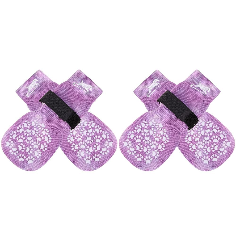 [Double Side No-Skid] It's our patent-exclusive design, Each side of the sock has [21 Cute Little Paw Grips] to provide strong extra traction when your dog is walking on the smooth floor. Even if the socks twist, they will still work. It's good for active dogs, and If your senior dogs has problems who was splaying and keeps slipping on your wooden floors with their back legs, it can help your old friends walk around in the house again!