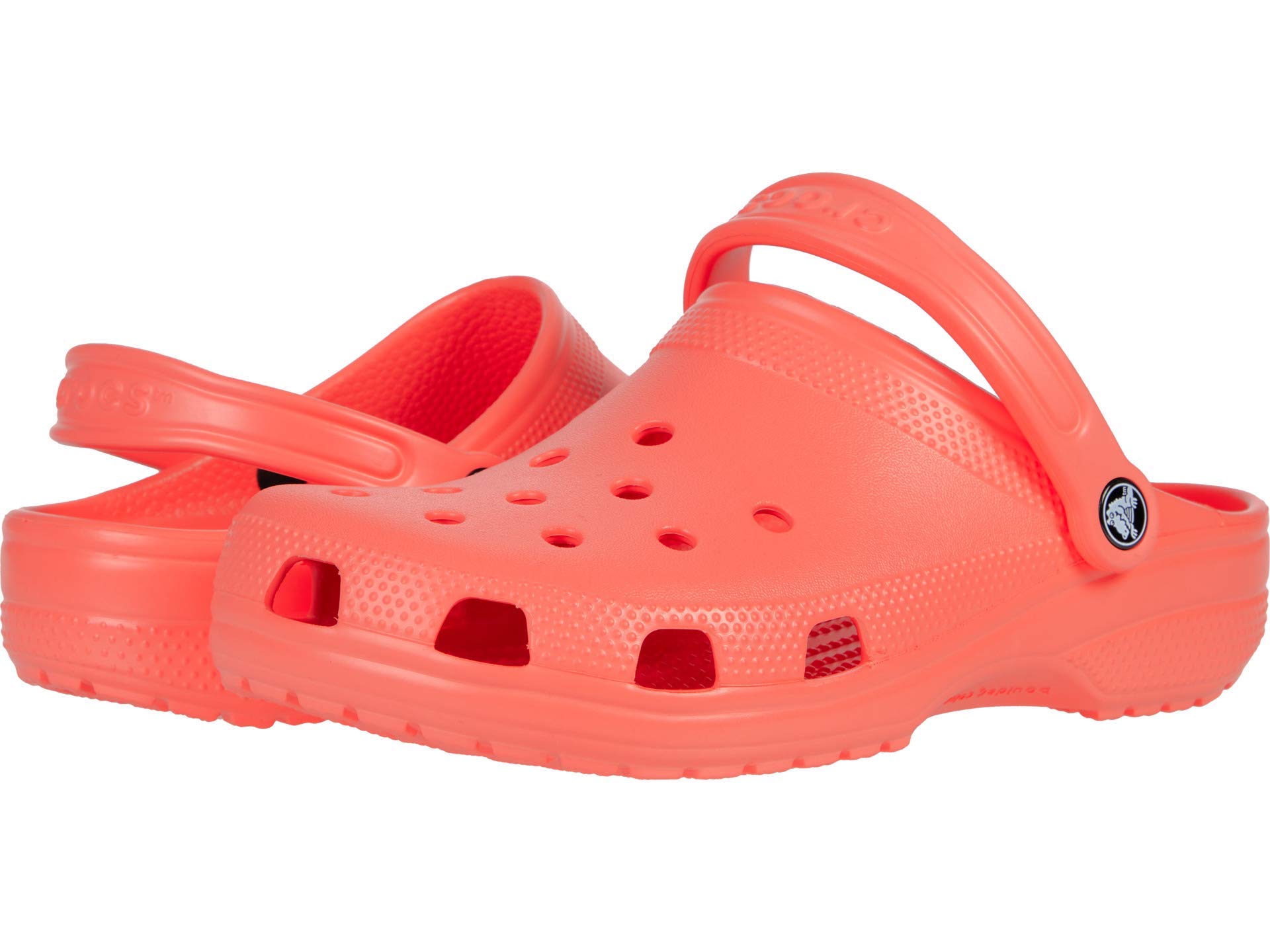 ALLOVER PERFORATIONS: These Crocs classic clogs feature allover perforations that allows air and water to pass through multiple ports inside of shoe. Whether you’re going out for a stroll or getting ready for a casual look, these unisex clogs are a great choice. They come in medium width. The measurements of these shoes were taken using size Men's 6, Women's 8, width Medium so they may vary by size.