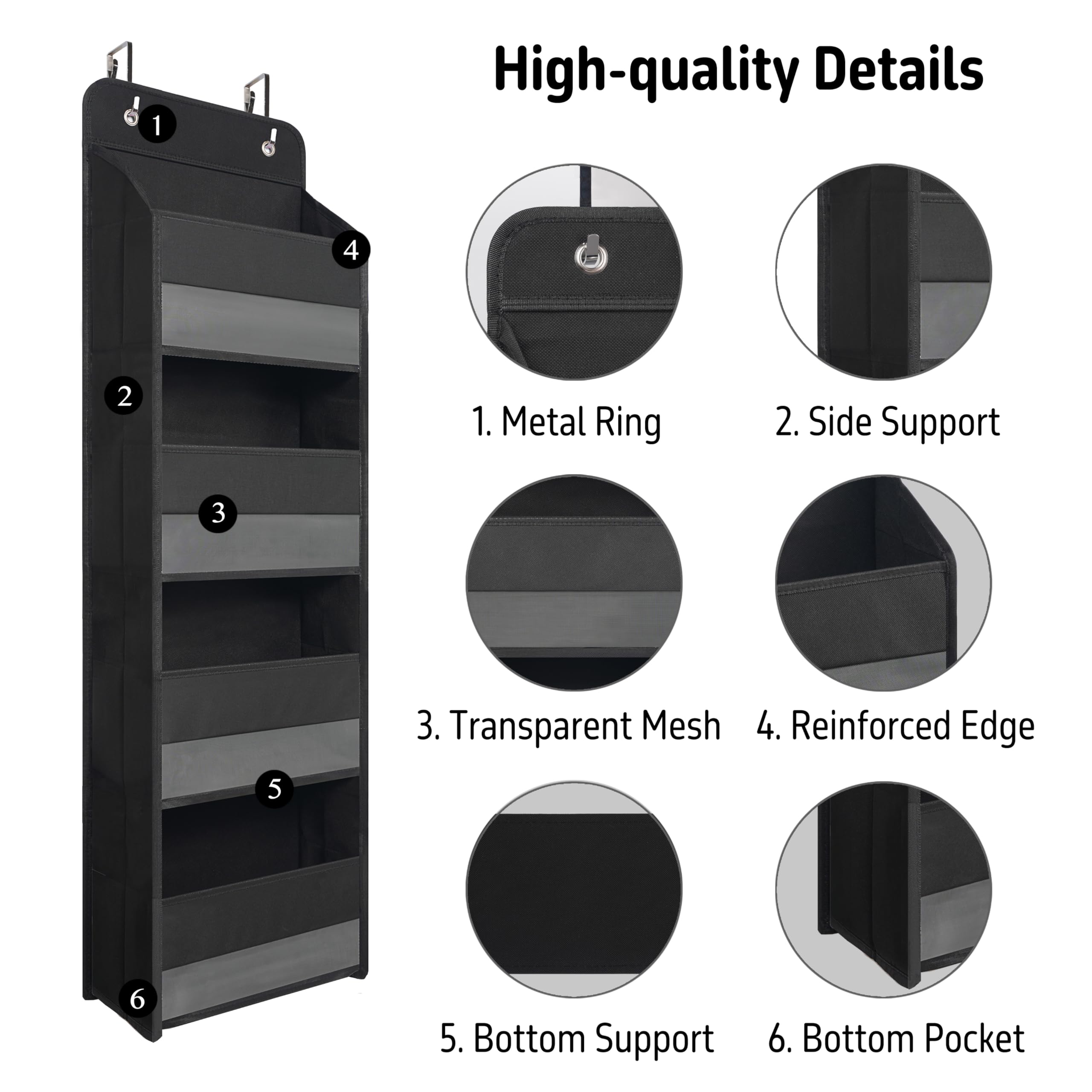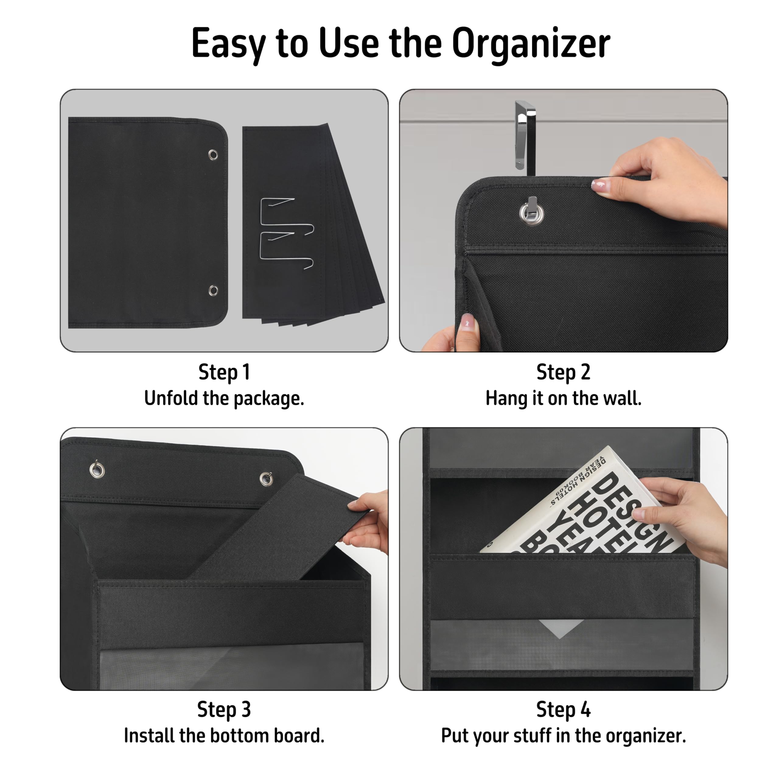 EFFORTLESS INSTALLATION - No hardware required; simply hang the organizer using the adjustable metal hook that fits most doors, ensuring a hassle-free setup process.