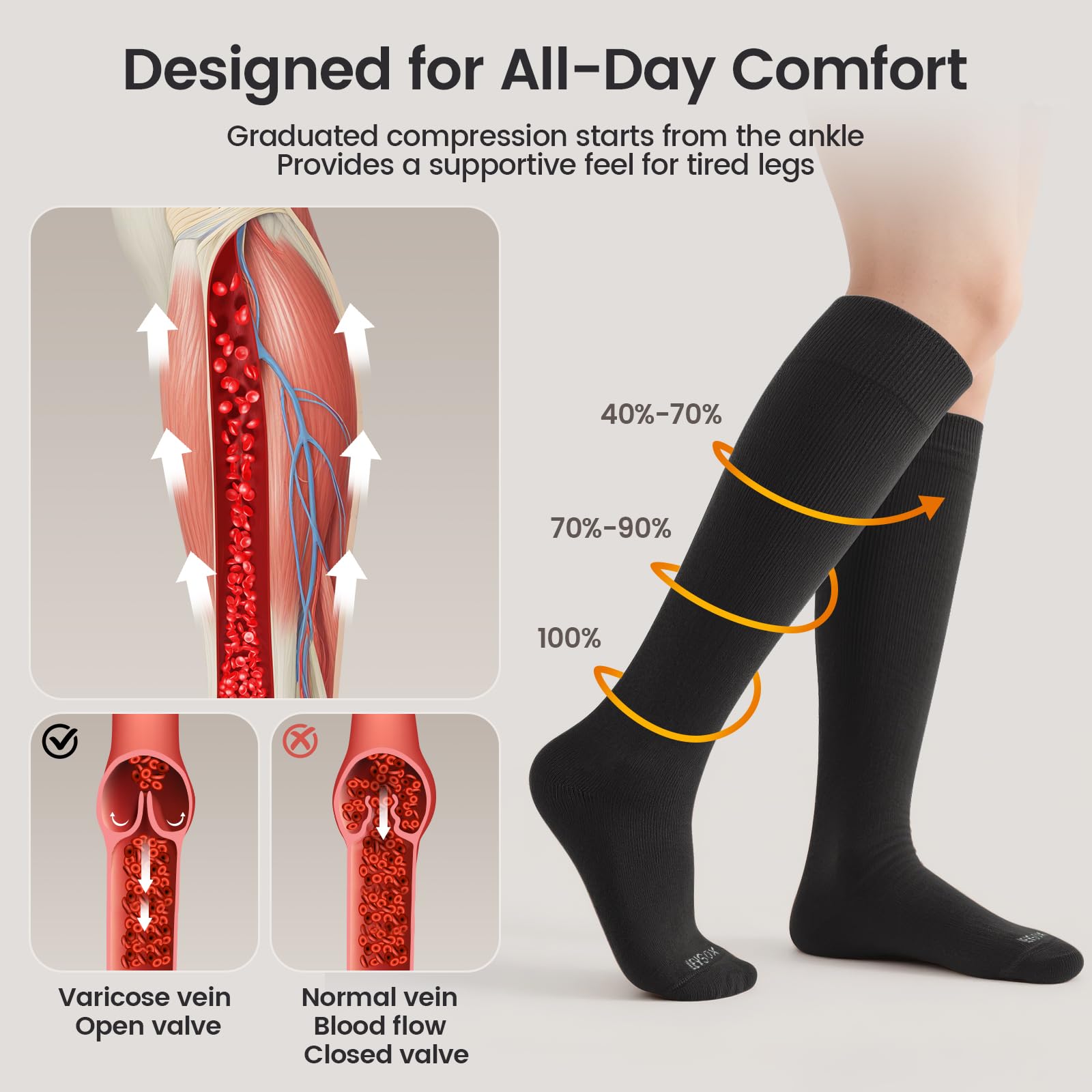 20-30 mmHg Compression Socks: These compression socks for men and women deliver firm, graduated compression to support circulation and reduce leg fatigue. Ideal for maternity use, nurses, travelers, and anyone on their feet for long hours