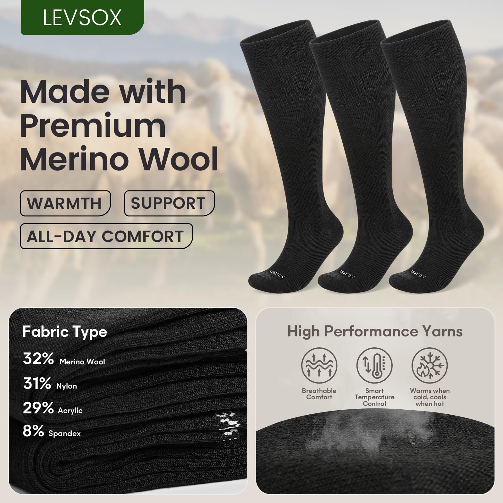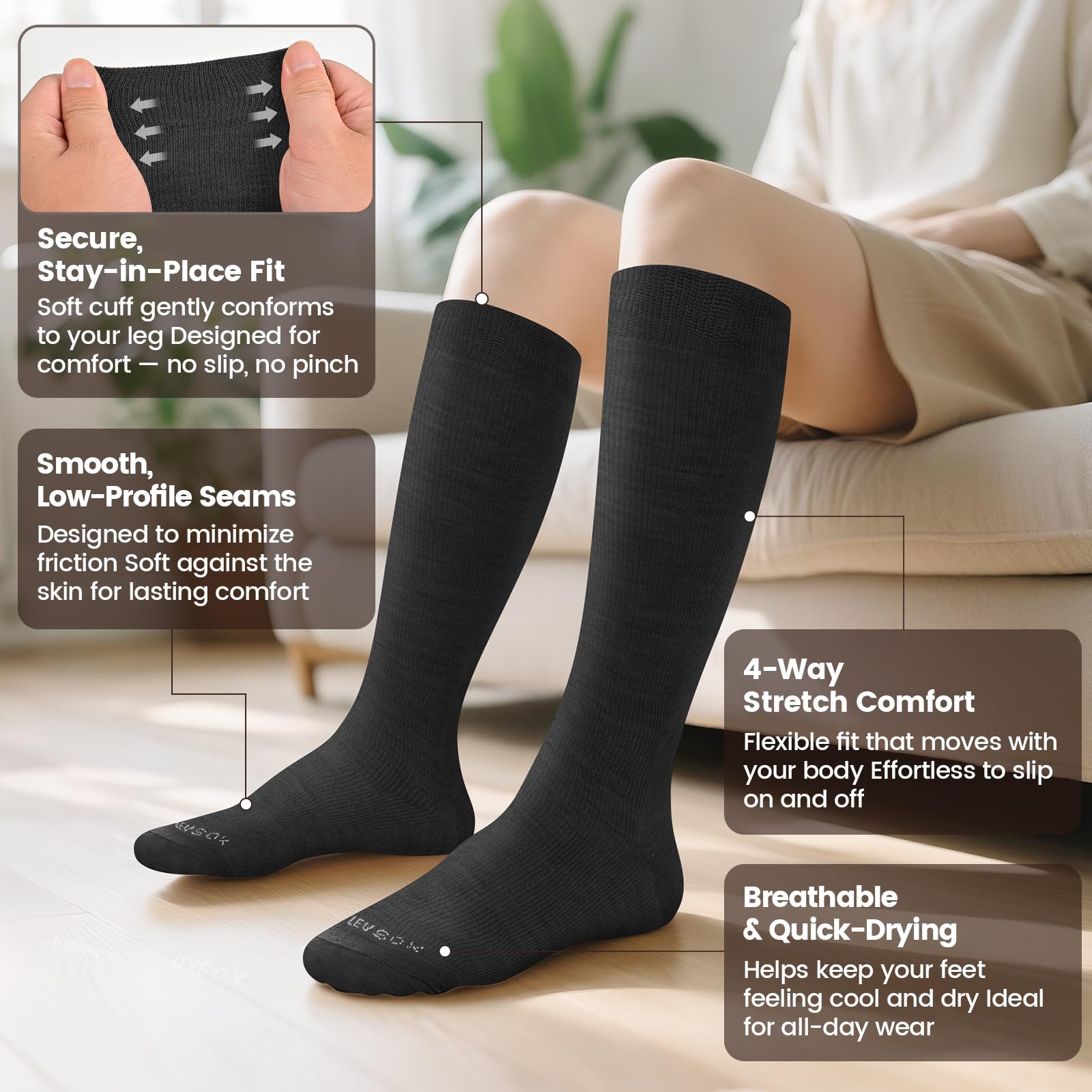 Merino Wool for All-Season Comfort: Crafted with 32% Merino Wool, these knee high compression socks help regulate temperature and wick away moisture. The breathable, skin-friendly fabric keeps feet comfortable in both warm and cool conditions