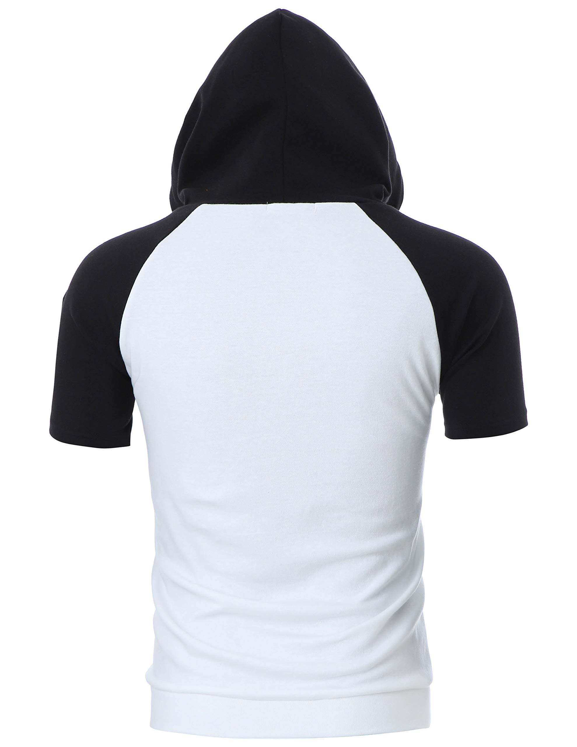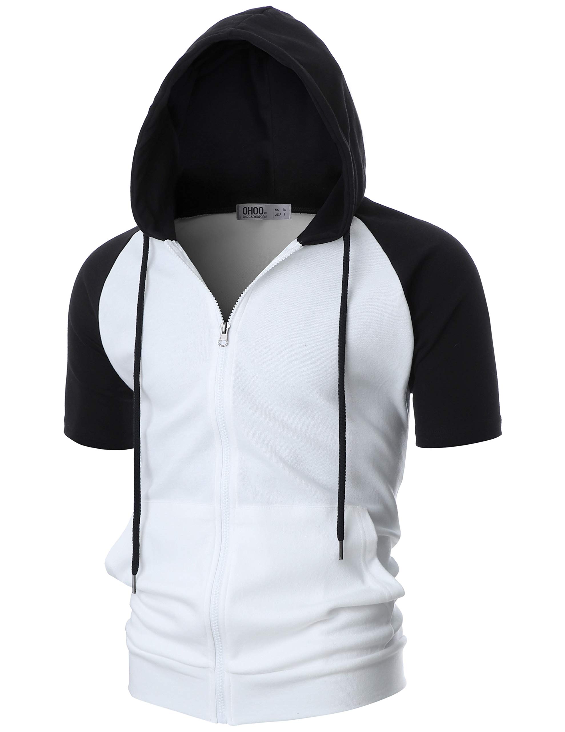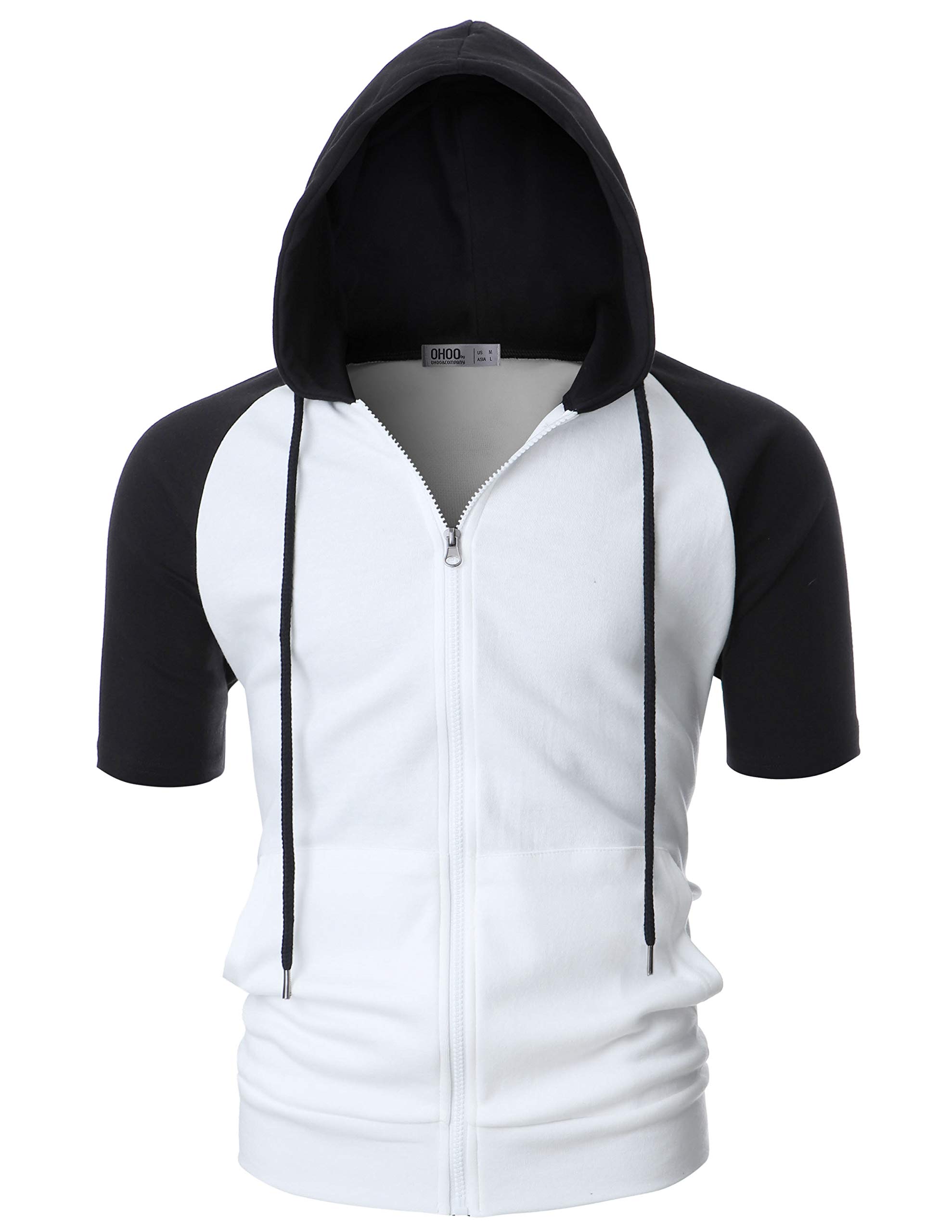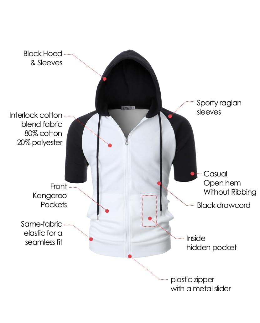 Item Model No DCF077: Slim Fit, durable interlock cotton blend fabric, sporty raglan sleeves, casual open hem without ribbing, and stylish black hood & sleeves