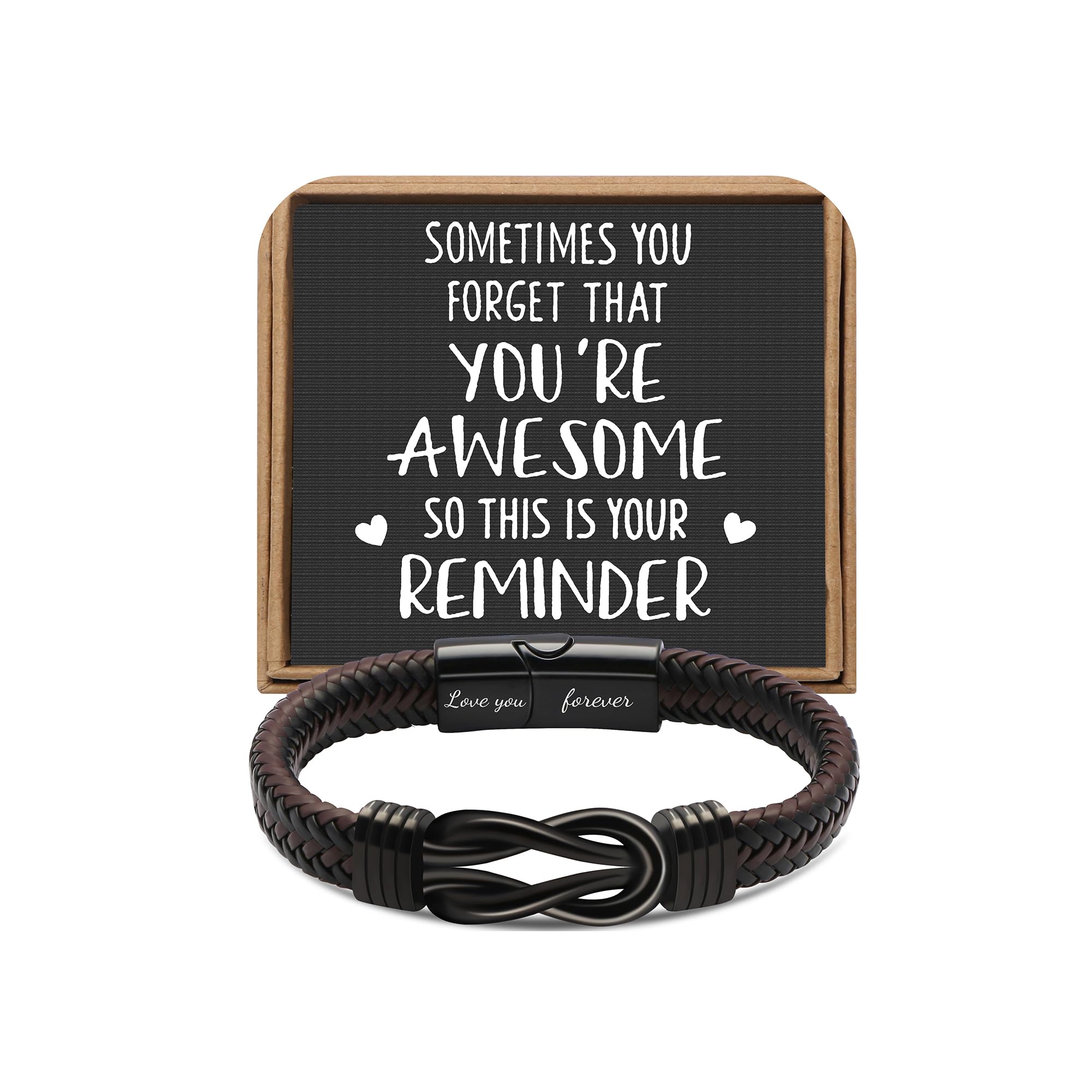 Special Design β¨ The leather bracelet is designed simply and generously, with brown braided rope and Infinity Knot, Showing off fashion. Men bracelet is engraved with βlove you foreverβ, which is able to convey the meaning of your love. This cuff bracelet will surely melt their heart