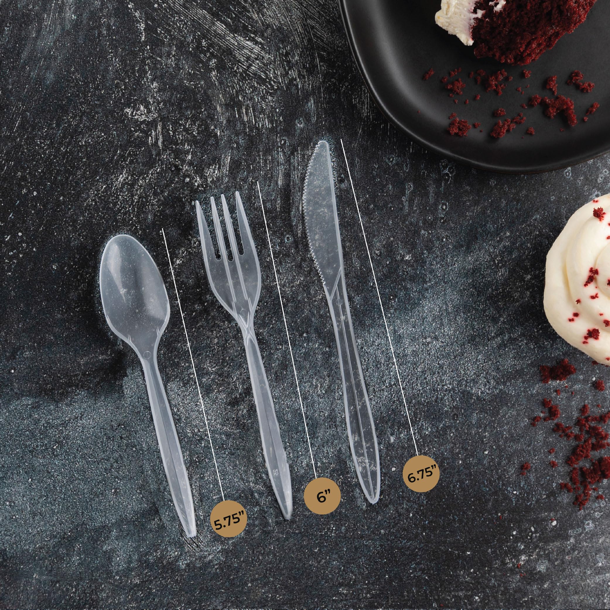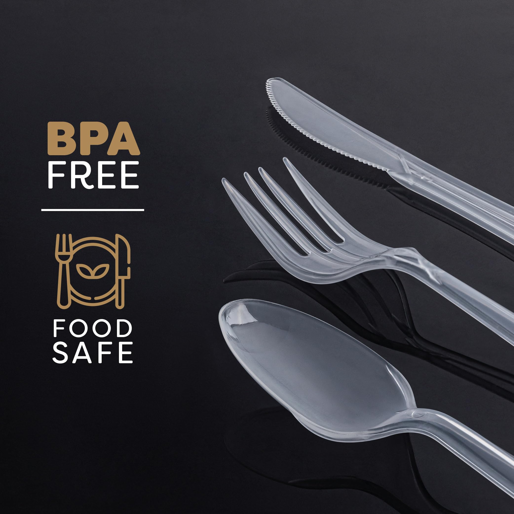 Medium weight plastic cutlery for parties, dinners, and more. Made with food safe and quality BPA free plastic.