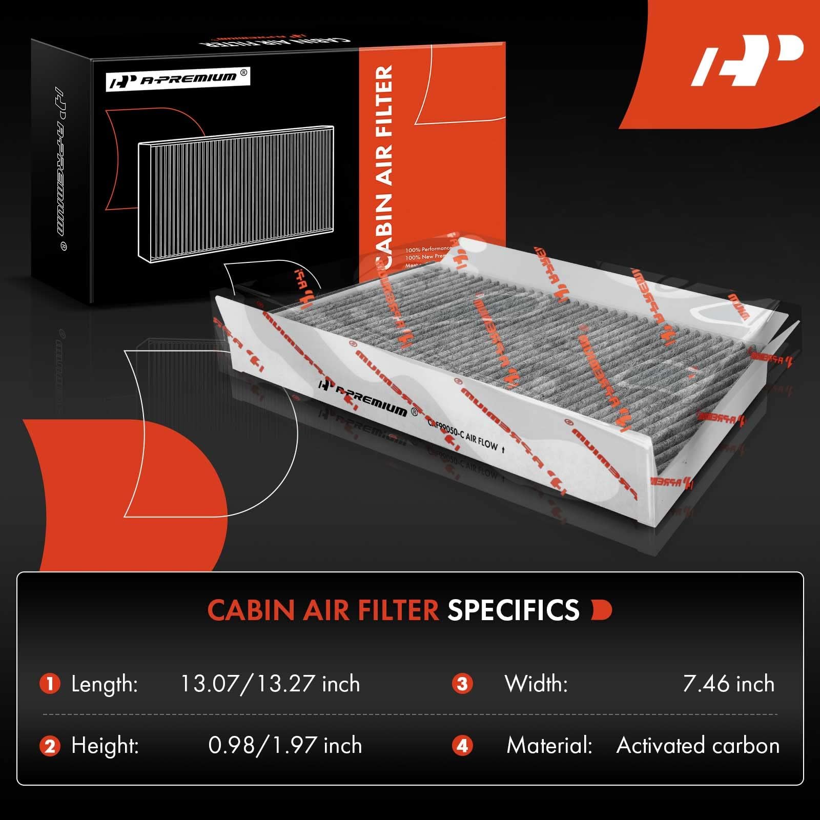 [Specifications]: ① Location: Front; ② Length: 13.07/13.27 inch; ③ Width: 7.46 inch; ④ Height: 0.98/1.97 inch; ⑤ Activated Carbon Included: Yes; ⑥ Package Quantity: 1 ⑦ Packaging Type: Box