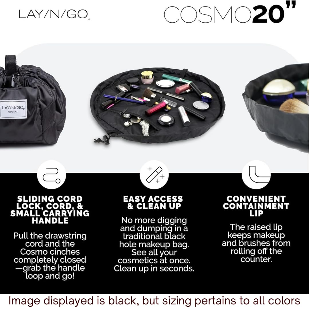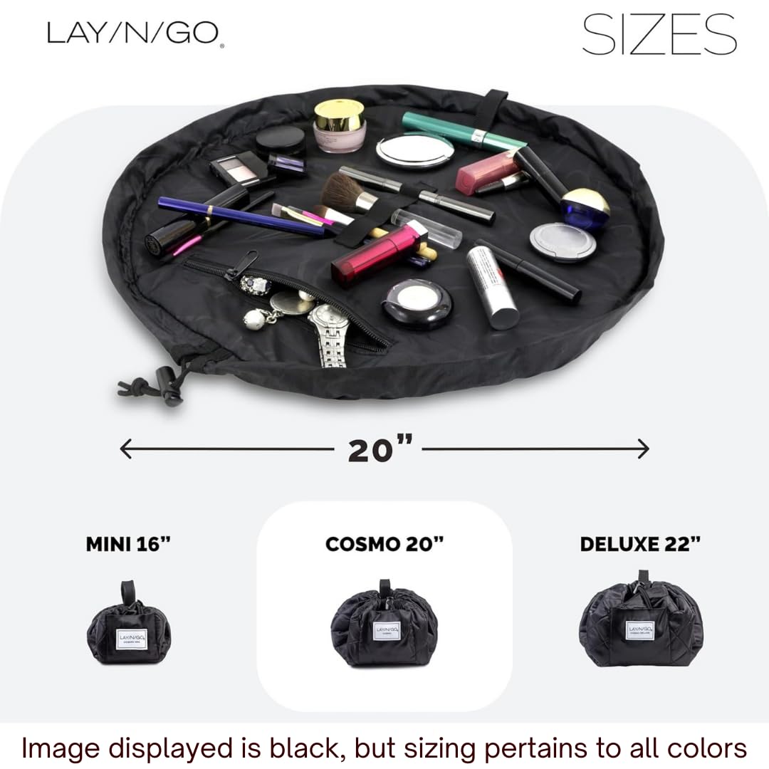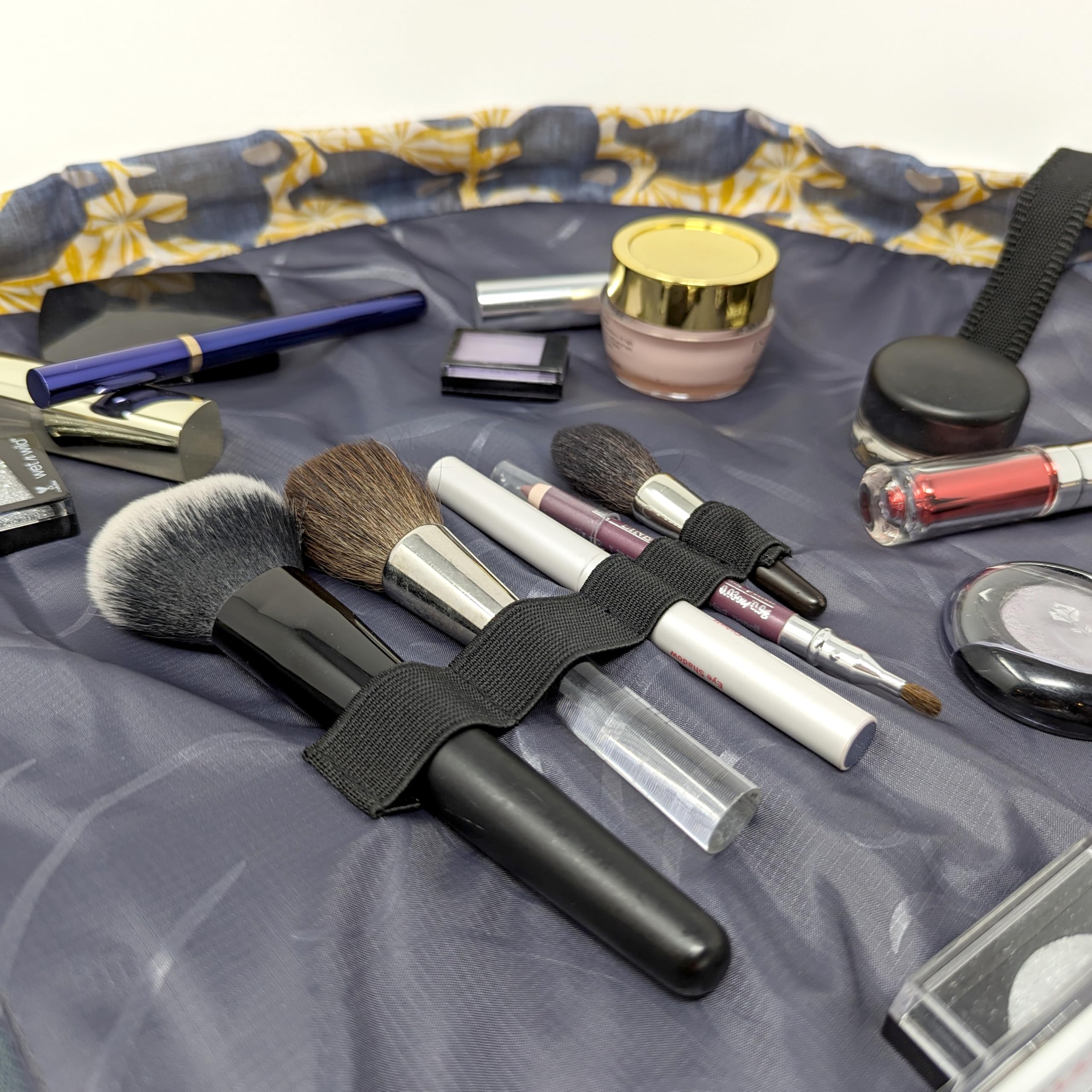 FAST CLEANUP, NO MESS: Lay flat to instantly access all your makeup, then cinch closed for effortless cleanup – no more digging through cluttered bags or bathroom counters.