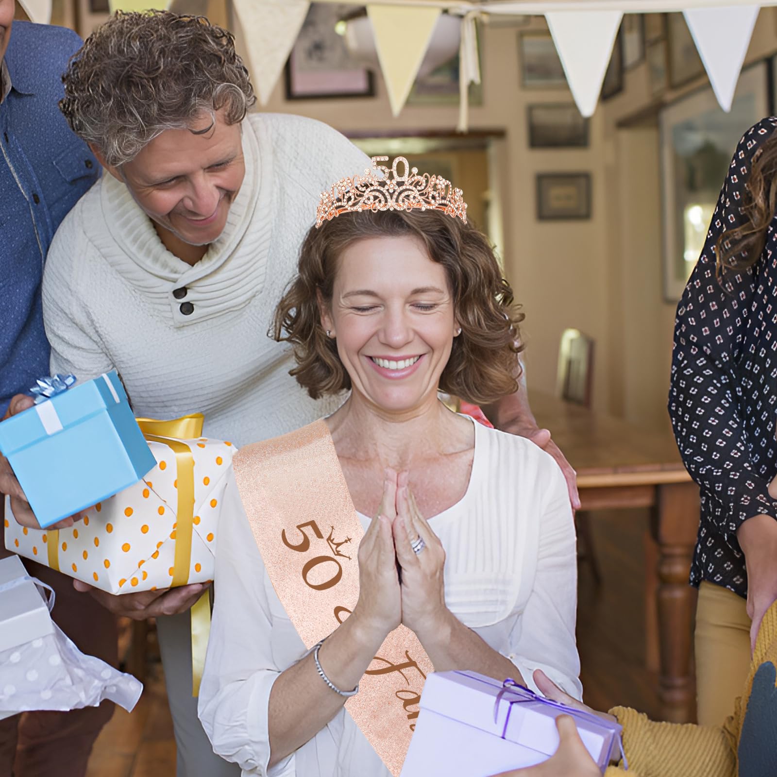 Great 50th birthday decorations for women: In addition to balloons, curtains, banners and other 50th traditional birthday decorations, add a birthday crown to women and leave her a special birthday moment. No one can refuse to be beautiful, especially at the commemorative moment of birthday. Put it on and take photos with any method you like, leaving a precious memory for the future