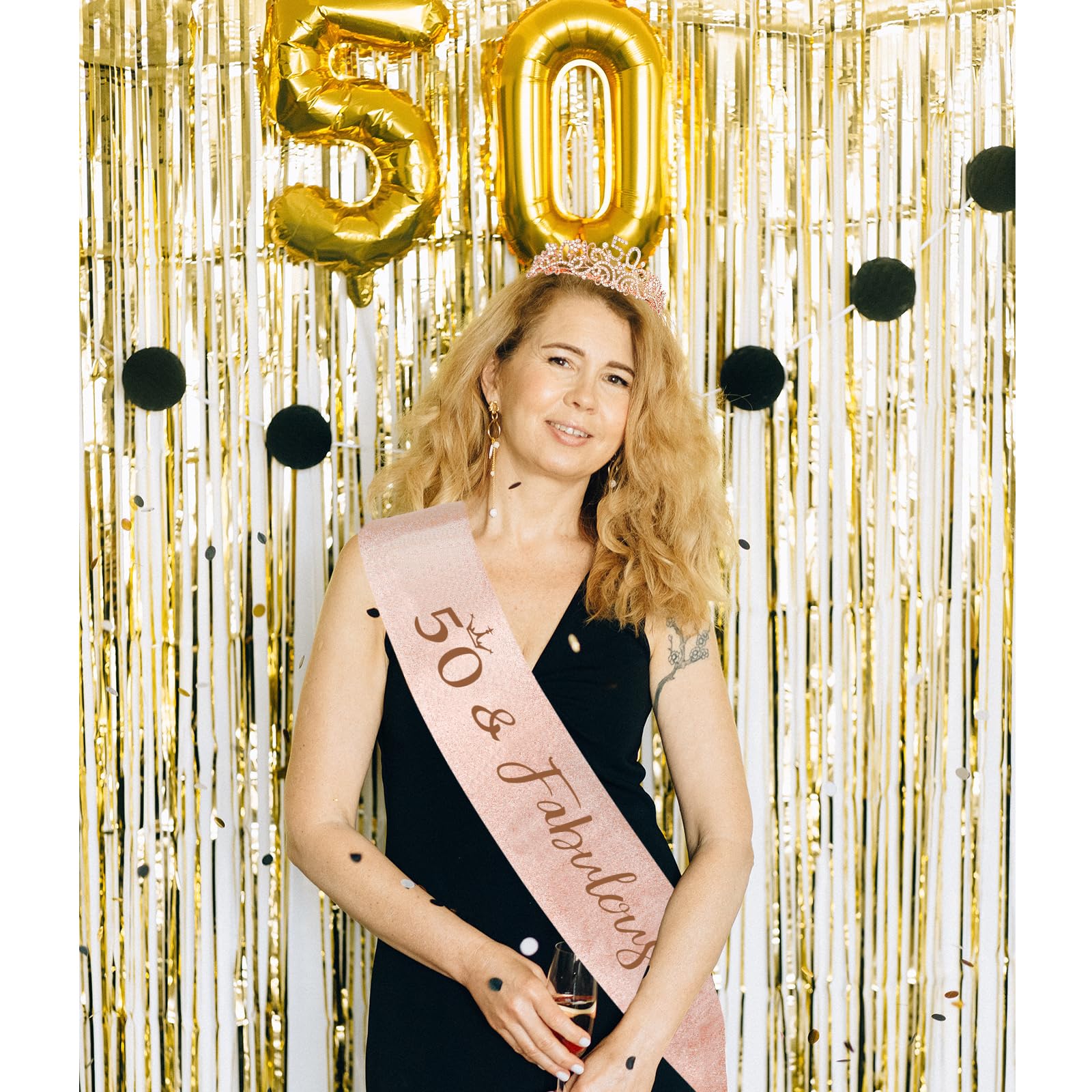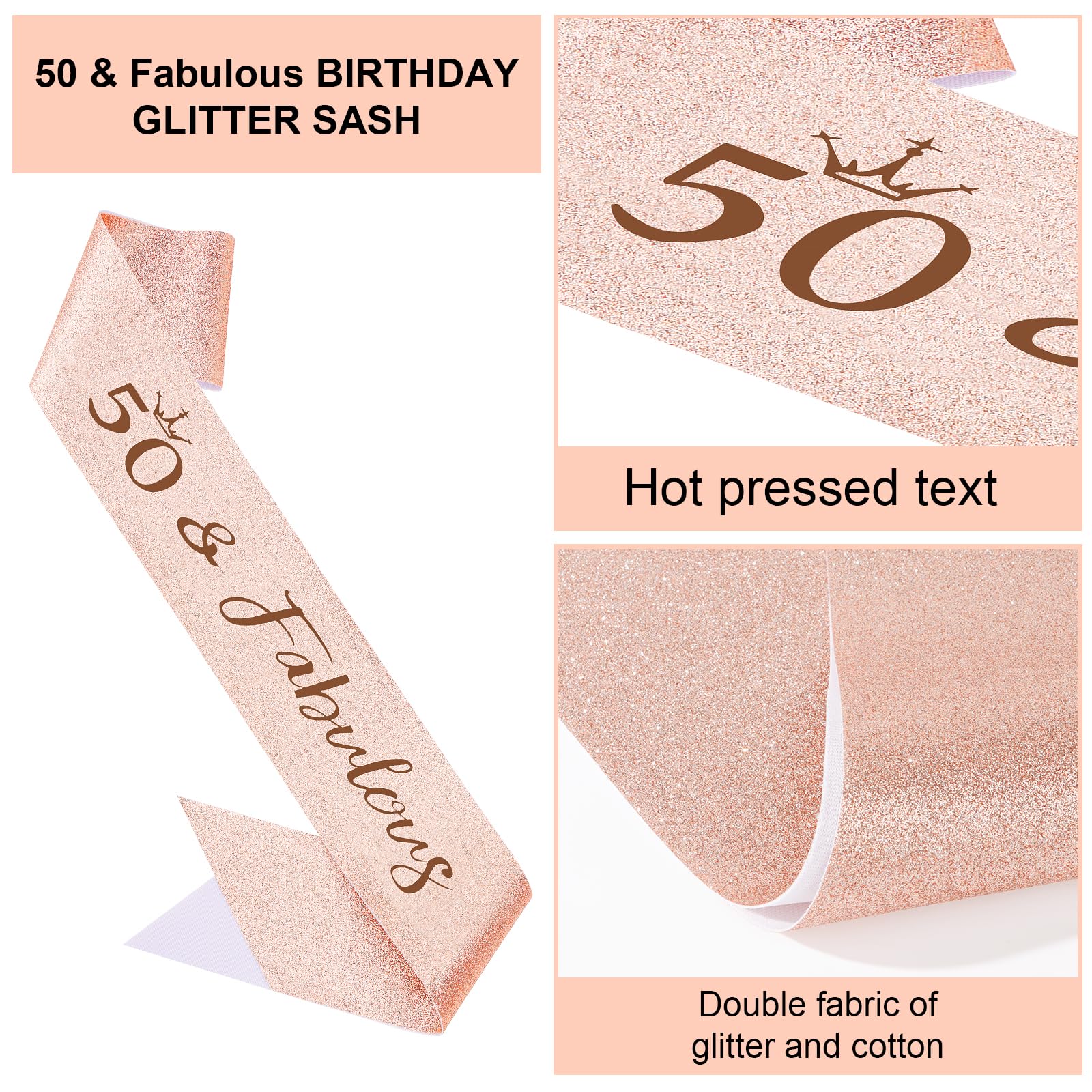 Glitter 50th Birthday Sash: In the selection of the cloth, we used the shiny gold cloth to make you the most eye-catching princess at your birthday party(A pin is included in the package to connect the sash). Besides, we adopted the hot pressed design for the text to avoid the embarrassing situation of the hook and the printing falling off