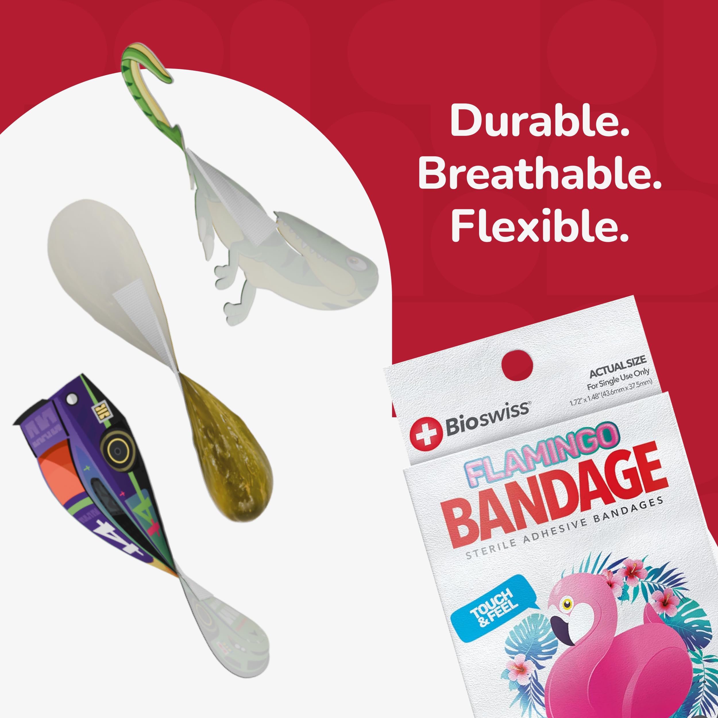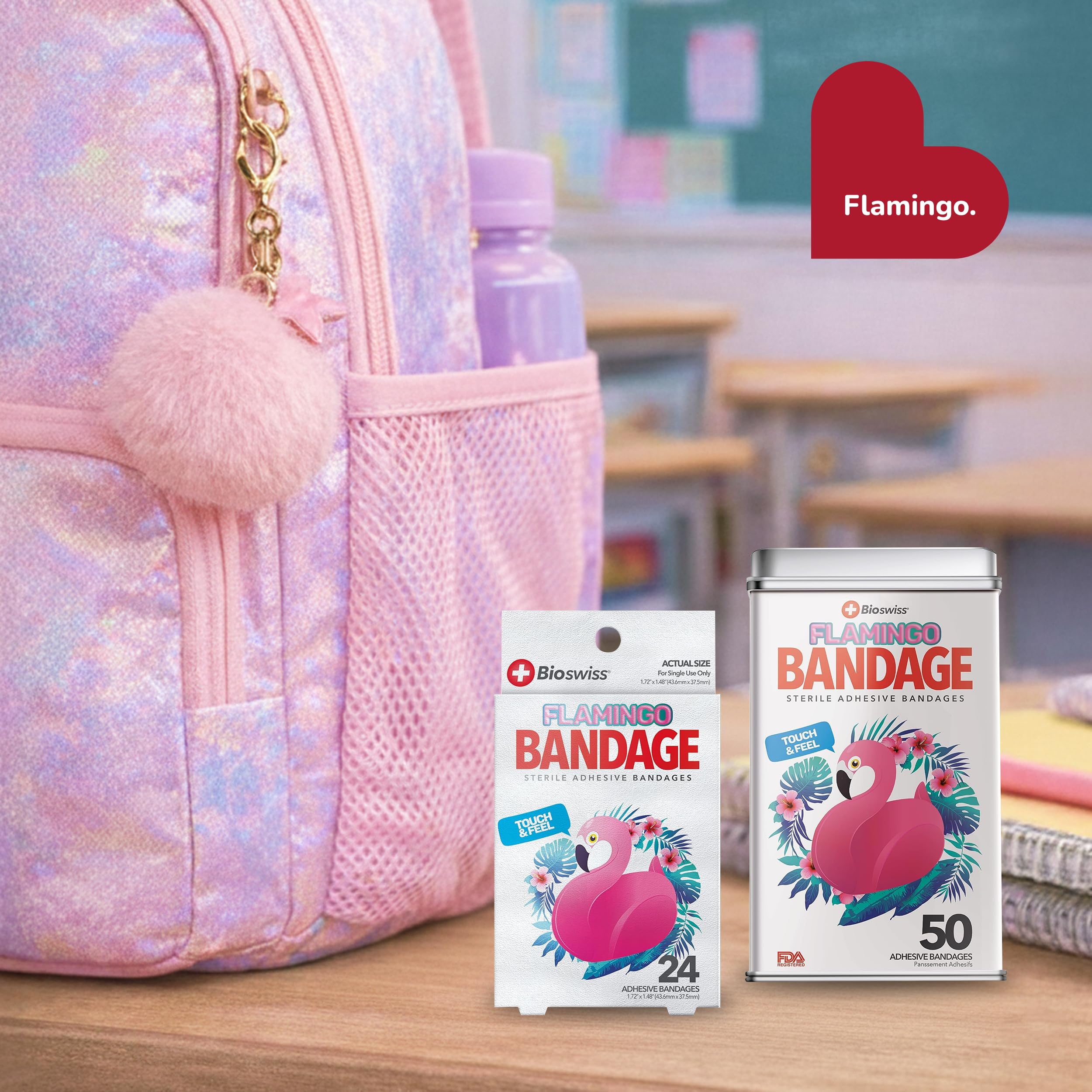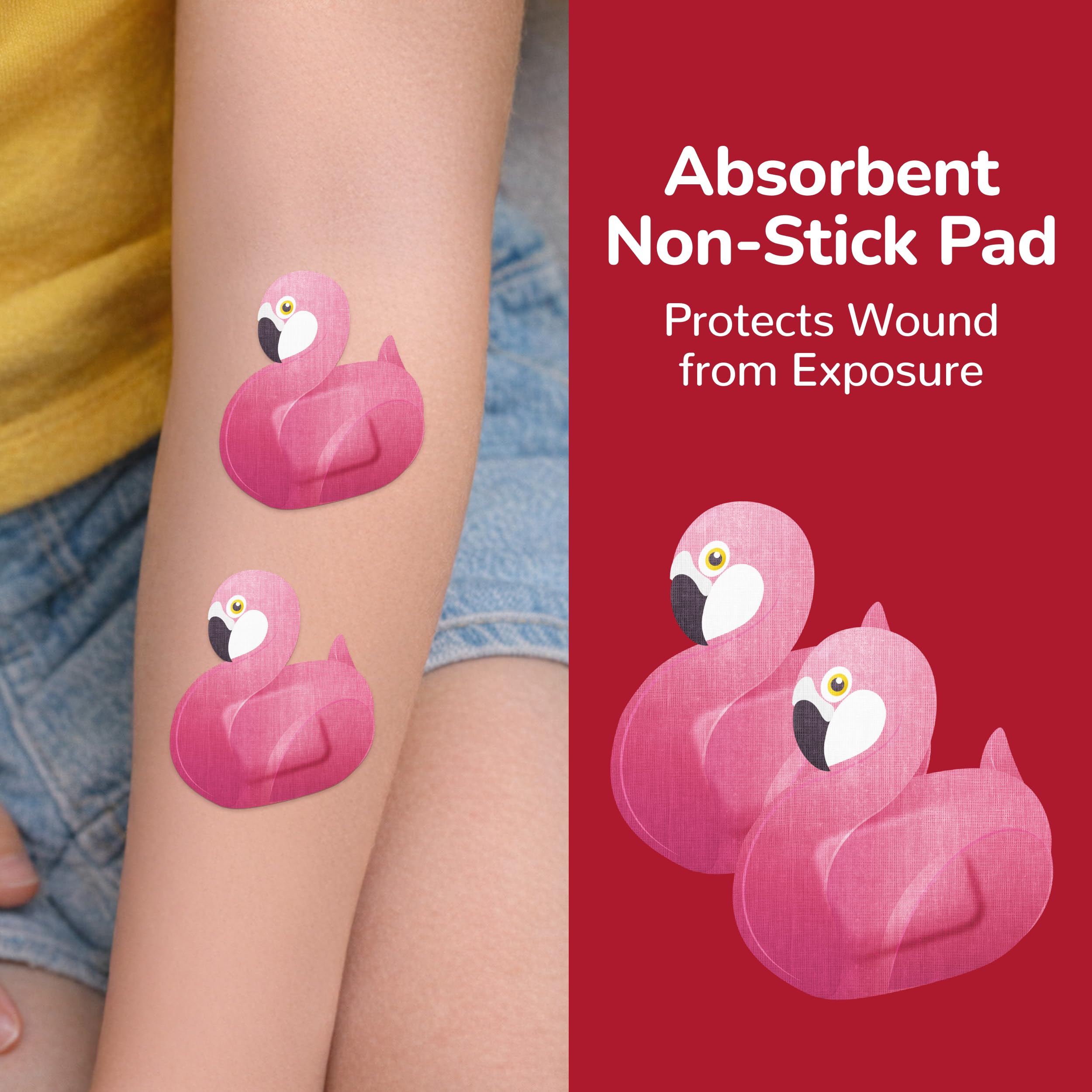 24 FLAMINGO BANDAGES: Flamingo-shaped adhesive bandages pack helps protect cuts, scrapes, and minor wounds while making healing less stressful