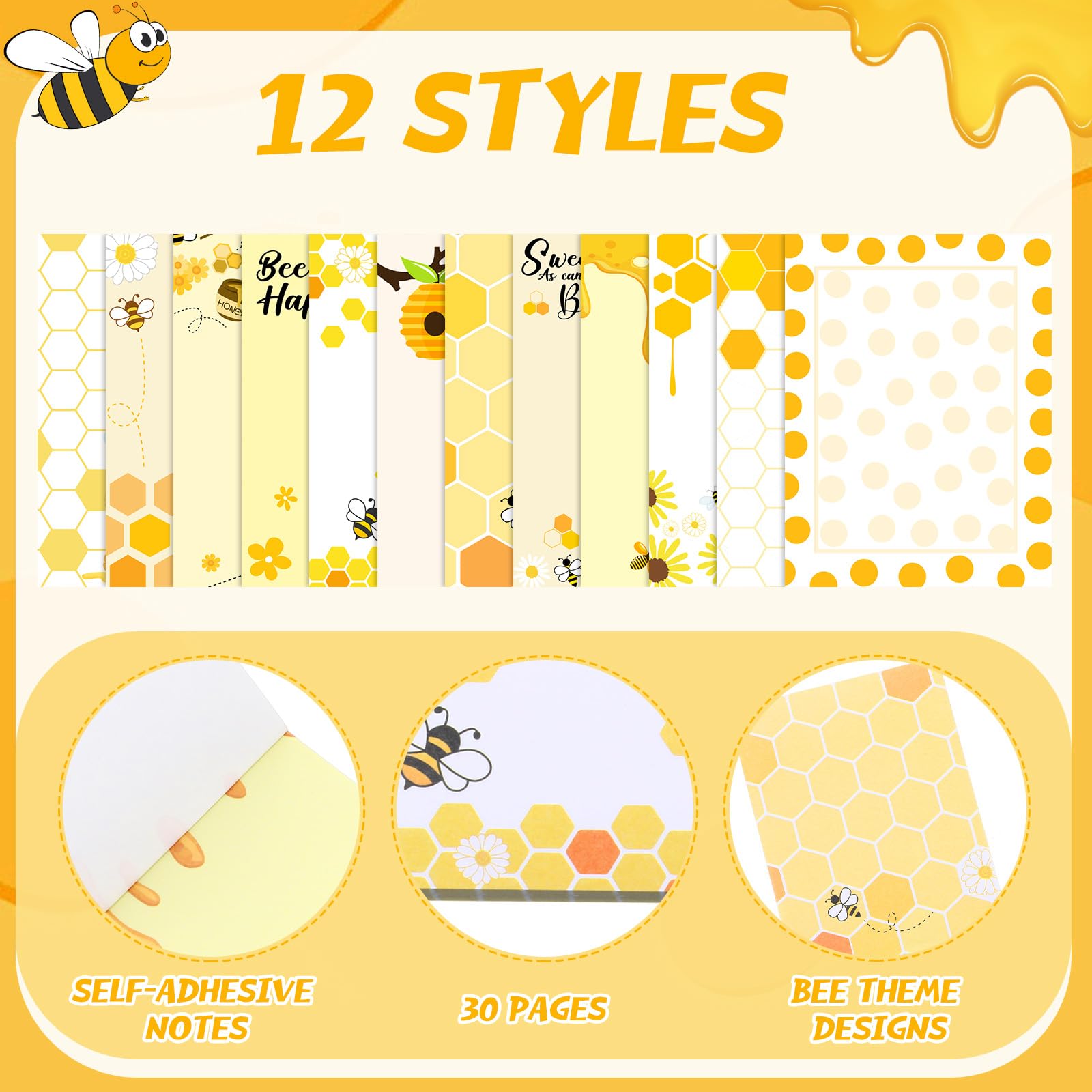 Sufficient Quantity: you will receive 12 pieces of bee themed sticky notes, packaged with 30 pages each, for a total of 360 sheets; The dimensions are a handy 3x4 inches /7.6x10 cm, enough quantity and rich design to meet your various needs and replacements