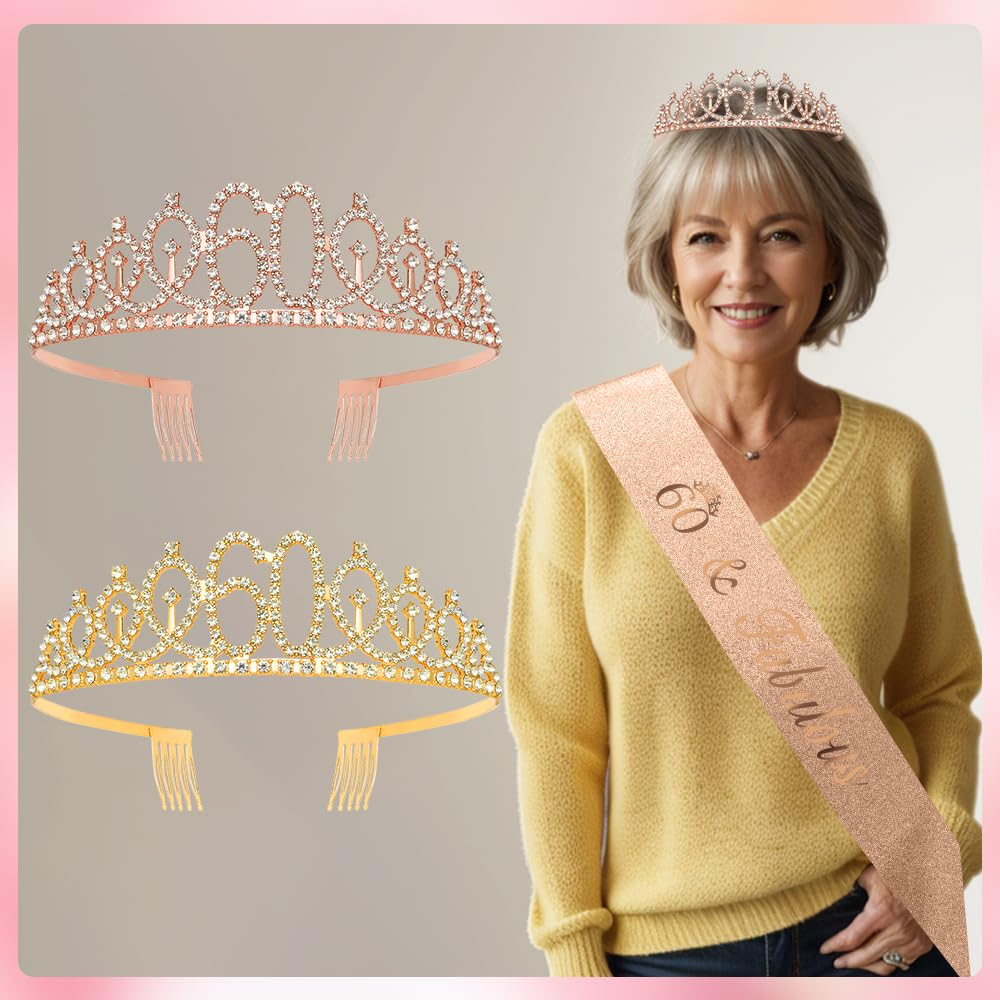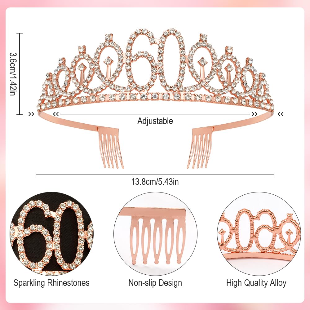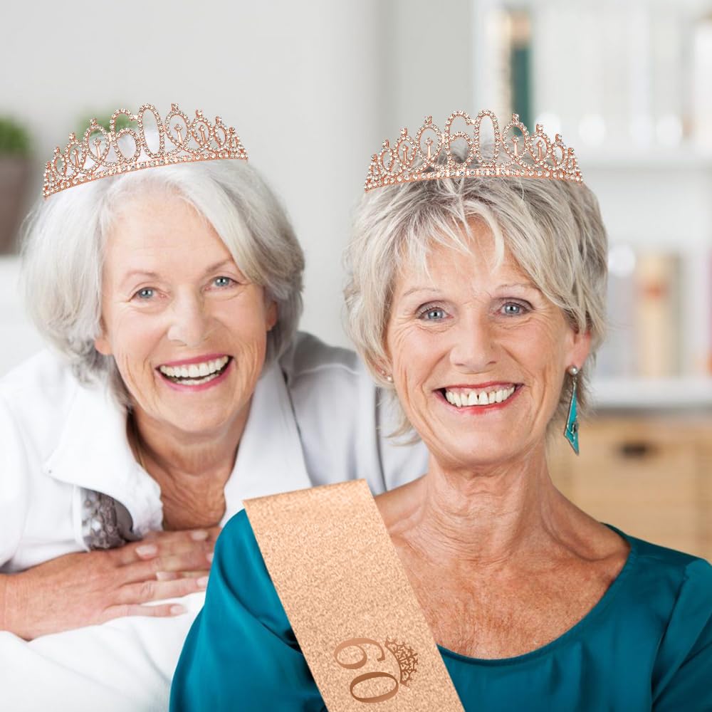 šBirthday Crown for Girls: 60th birthday sash, 60th birthday crown, 60th birthday gifts for women, 60th birthday decorations women, 60th birthday sash and tiara for women rose gold, happy birthday crown thoughtful unique gifts for colleague, educator, teacher, nurse, doctor, godmother. Perfect for special birthday girl party.