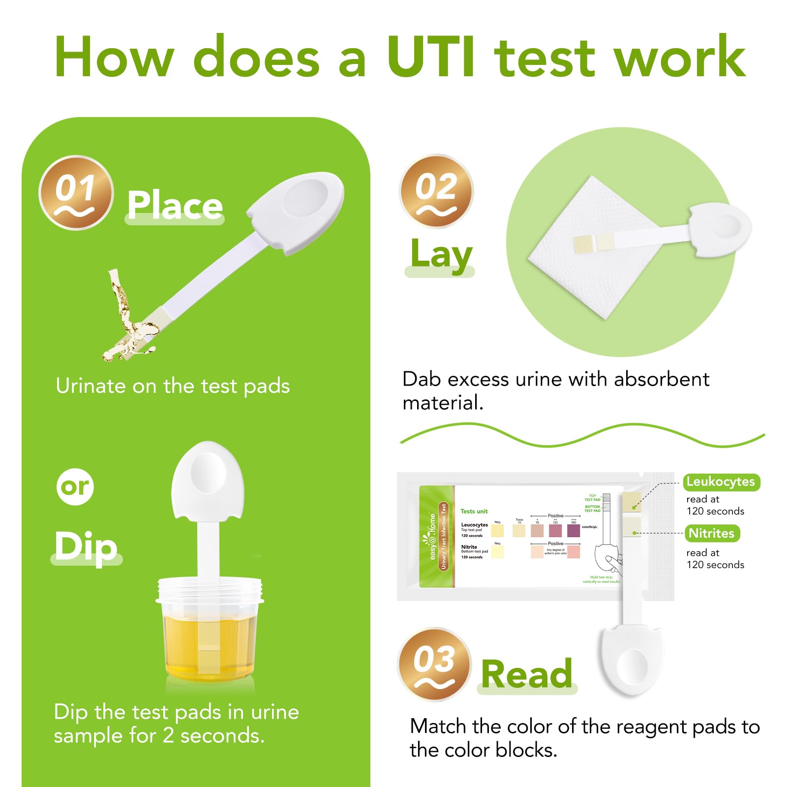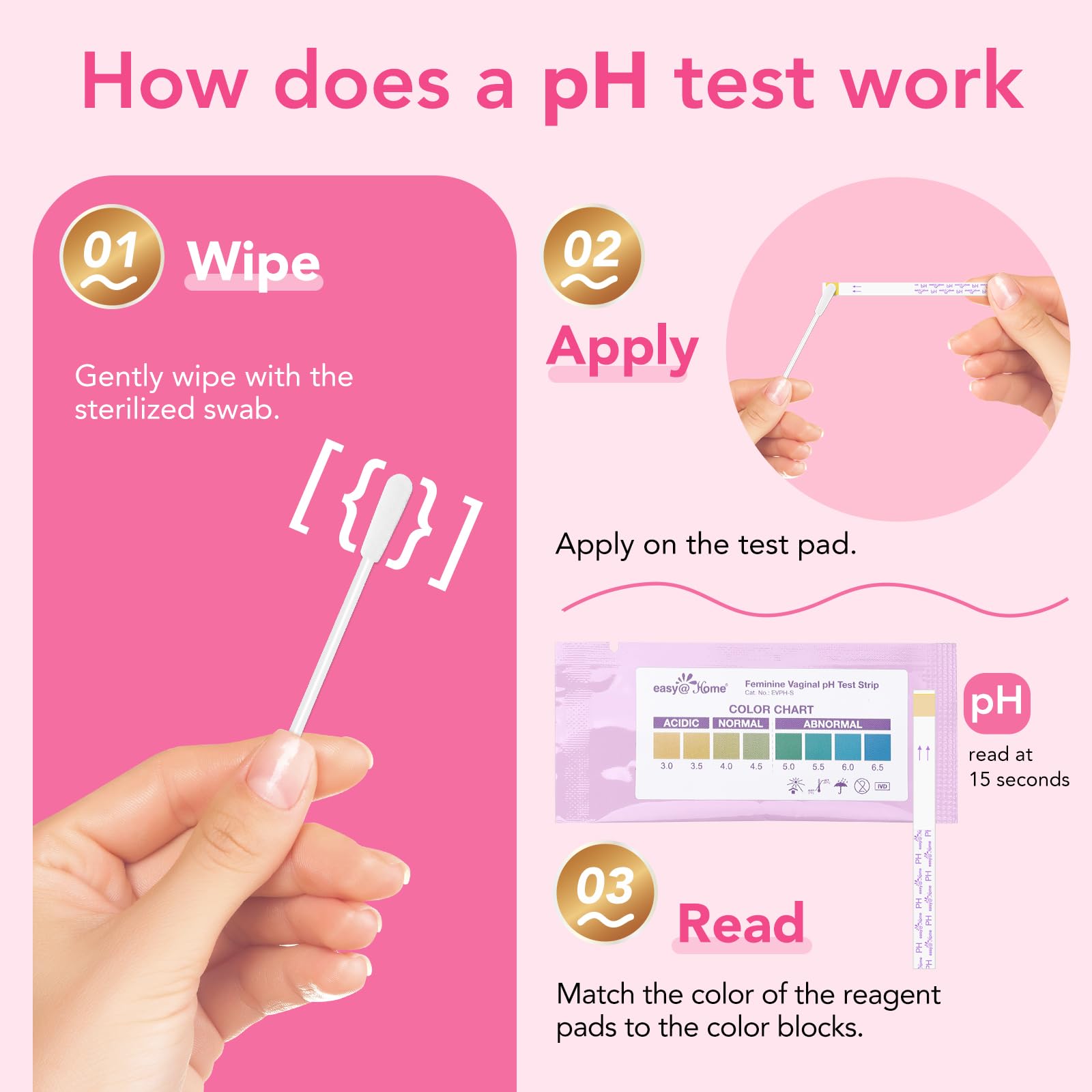 Simple Steps for Accurate Results: For UTI Testing, Immerse the strip in a urine sample for about 2 seconds or urinate directly on the pads, then wait 2 minutes for results. For Vaginal pH Testing, use the included swab to gently swab your vaginal wall for 5 seconds, then apply to the test strip. Read the results using the color chart after 15 seconds. Easy and reliable testing at home