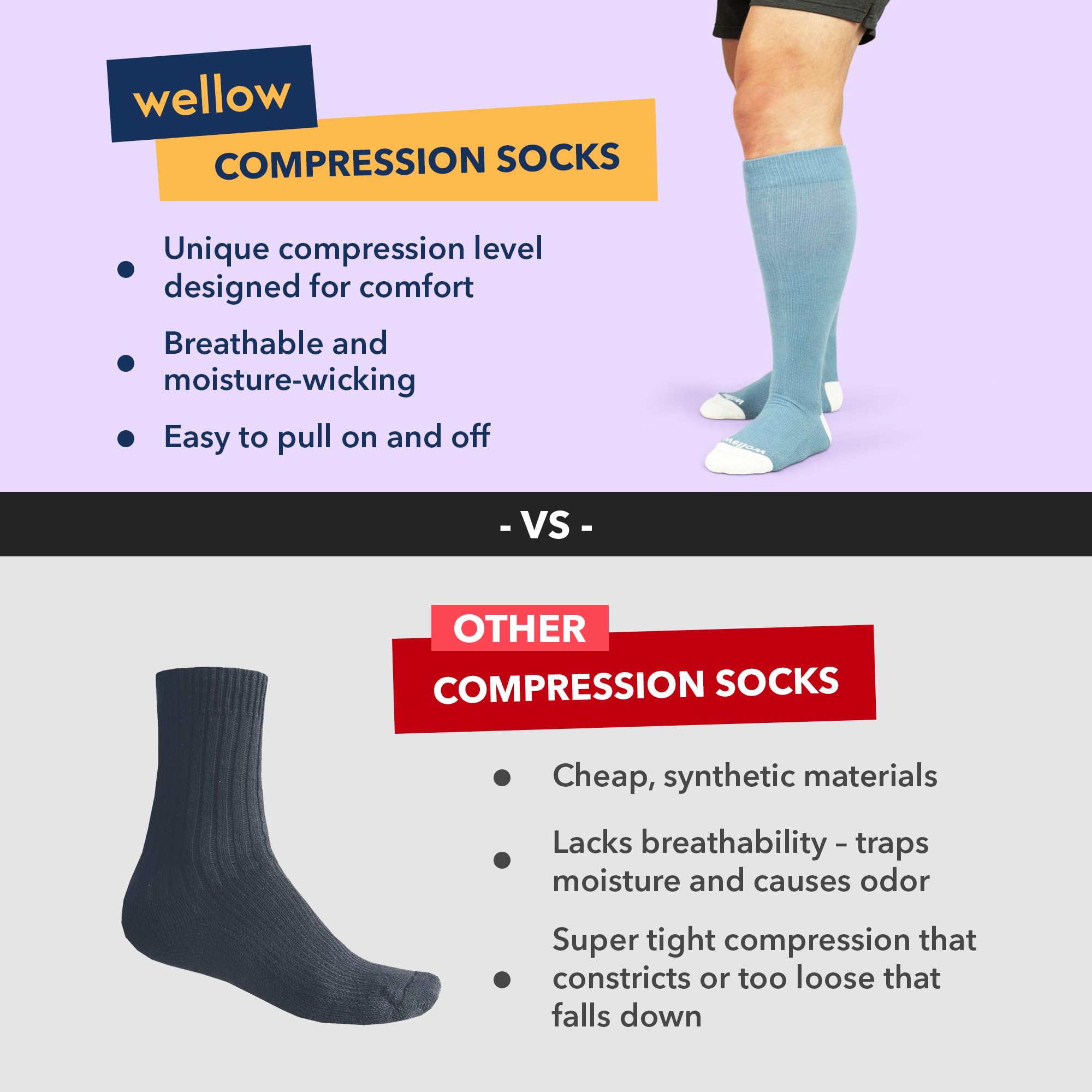 Available exclusively at Wellow, the ideal 18-25 mmHg compression level provides perfect support to boost circulation, reduce swelling, and help prevent varicose veinsβexcellent for recovery, long flights, and extended periods of standing or sitting. Designed for a calf circumference of 17" and stretches up to 22" for a secure yet comfortable fit.