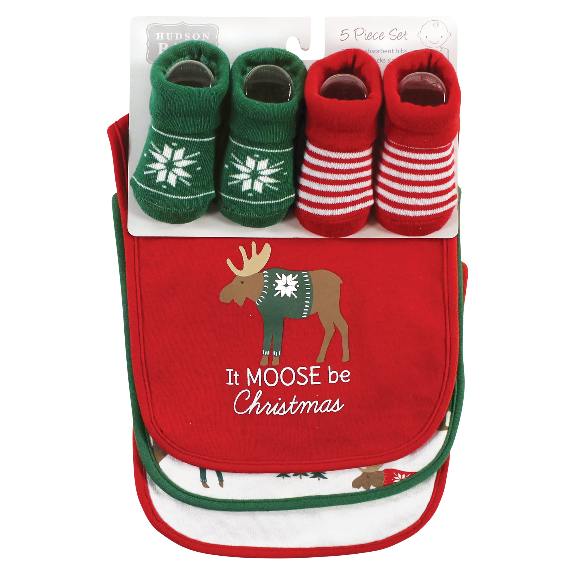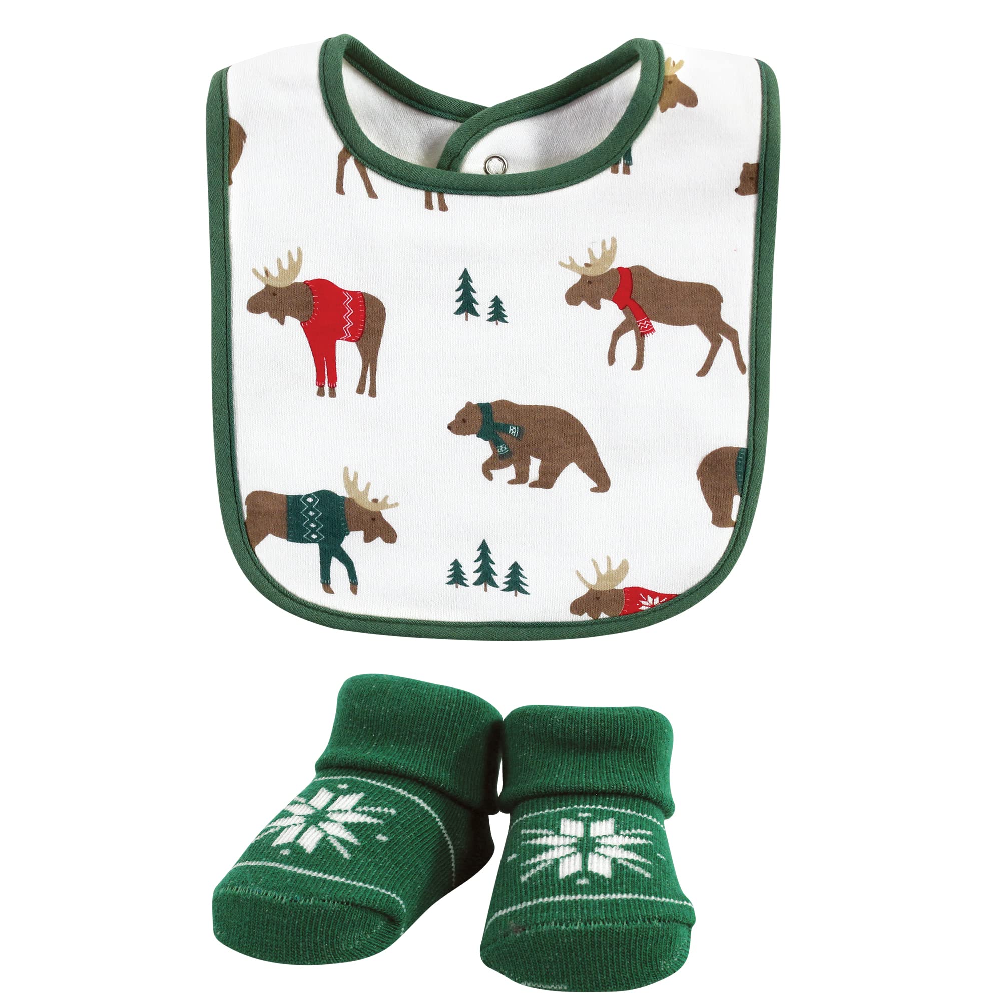 Description Hudson Baby bib and socks set are an adorable accessory set for fashionable matching bibs and socks. Each set features fun, cute bibs and socks made with coordinating fun, stylish prints. Our accessory set is a great baby shower gift.