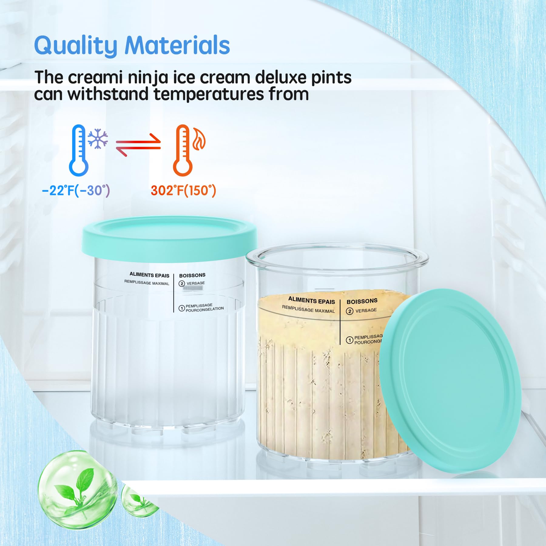 BPA-FREE & DISHWASHER-SAFE: The upgraded NC501 series pint is made of food-grade, BPA-free material, which is stronger and more durable. It can withstand temperatures from -22Β°F to 302Β°F (-30Β°C to 150Β°C). Safe for dishwasher cleaning and reusable for years without odor retention or discoloration.
