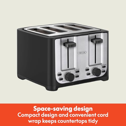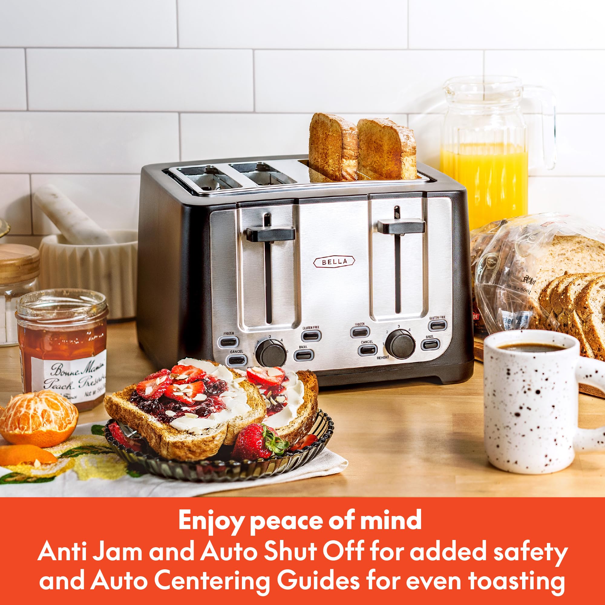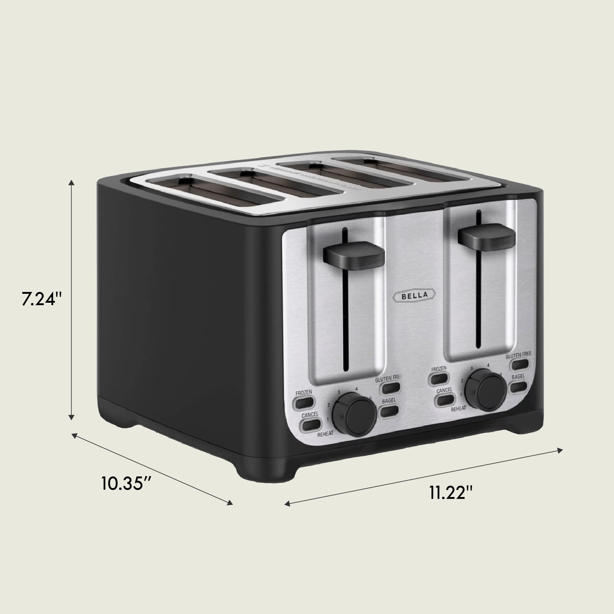 FAMILY-FRIENDLY: Elevate your breakfast game with BELLA's new beautiful toaster. Boasting 4 spacious slots, it can accommodate an array of breads, muffins, and bagels simultaneously, making it an ideal choice for hectic mornings with your loved ones