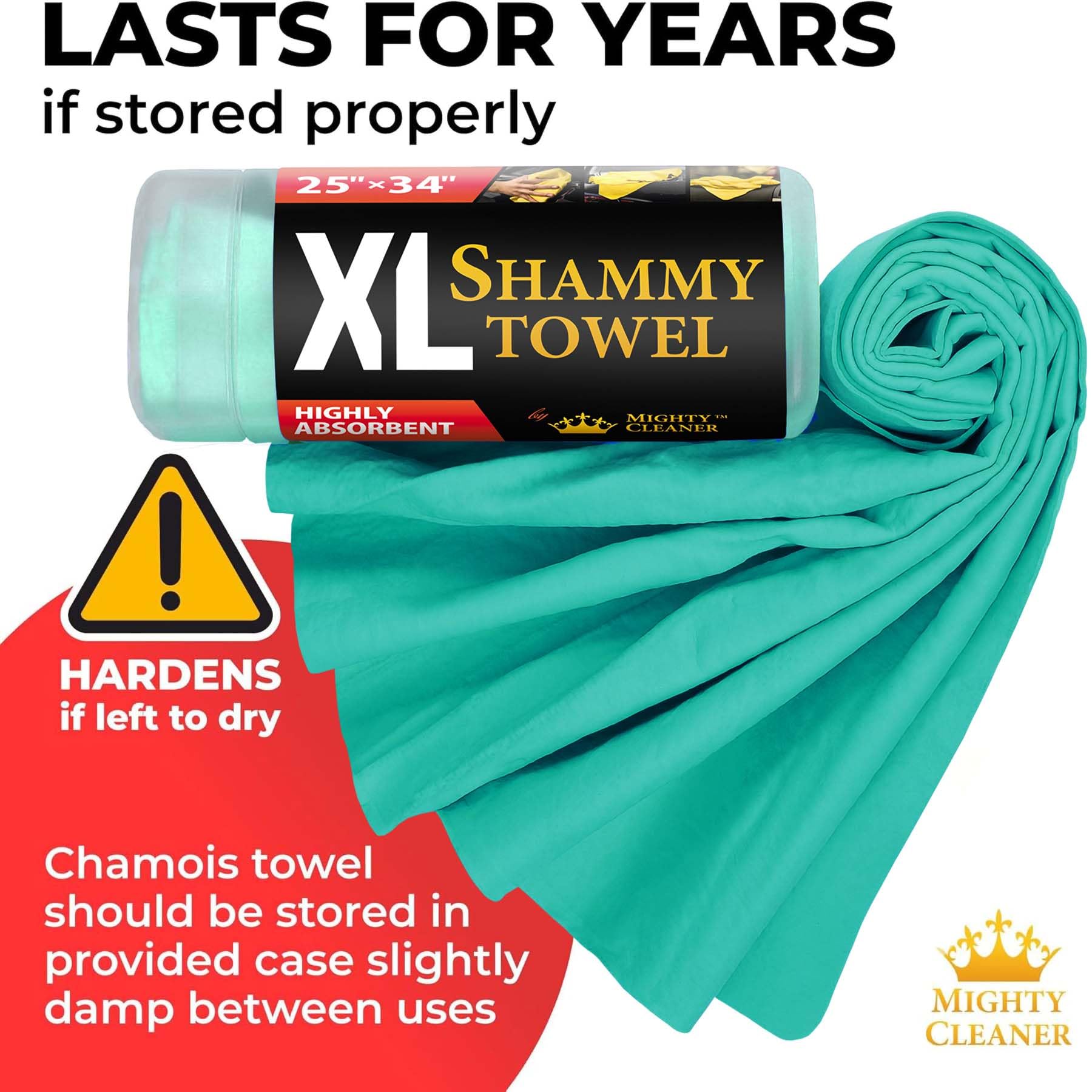 EXCEPTIONAL ABSORBENCY — The Mighty Cleaner chamois towel for car works like a charm soaking up and holding as much as 10 times its weight in water. Our shammy cloth for car drying is like having a sponge and a towel in one.