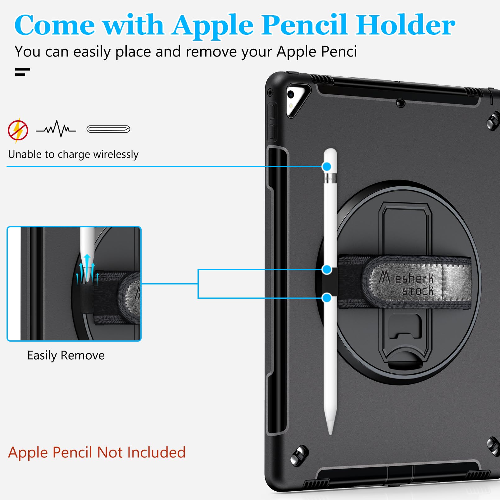 BUILT-IN APPLE PENCIL HOLDER + PRECISE CUTOUTS: The iPad pro 12.9 case 2017 2015 built-in apple pencil holder(on the side of the hand strap),Let your pencil have a home Precise cutouts, easily access all ports, buttons and functions thanks to the exact design, makes sure every hole is in the exact place.