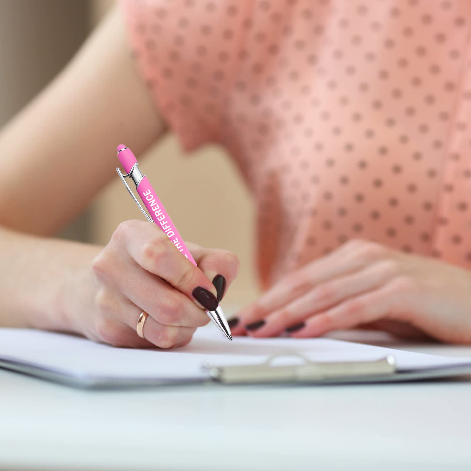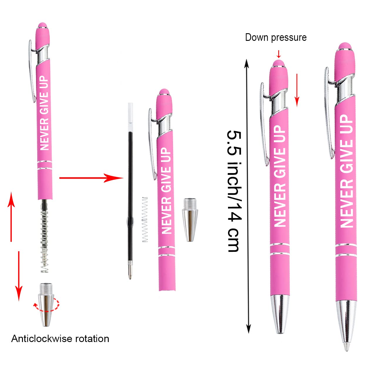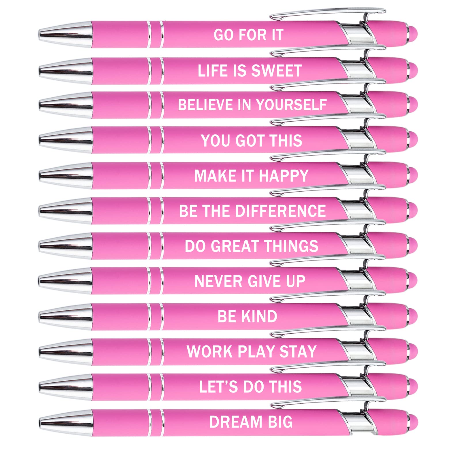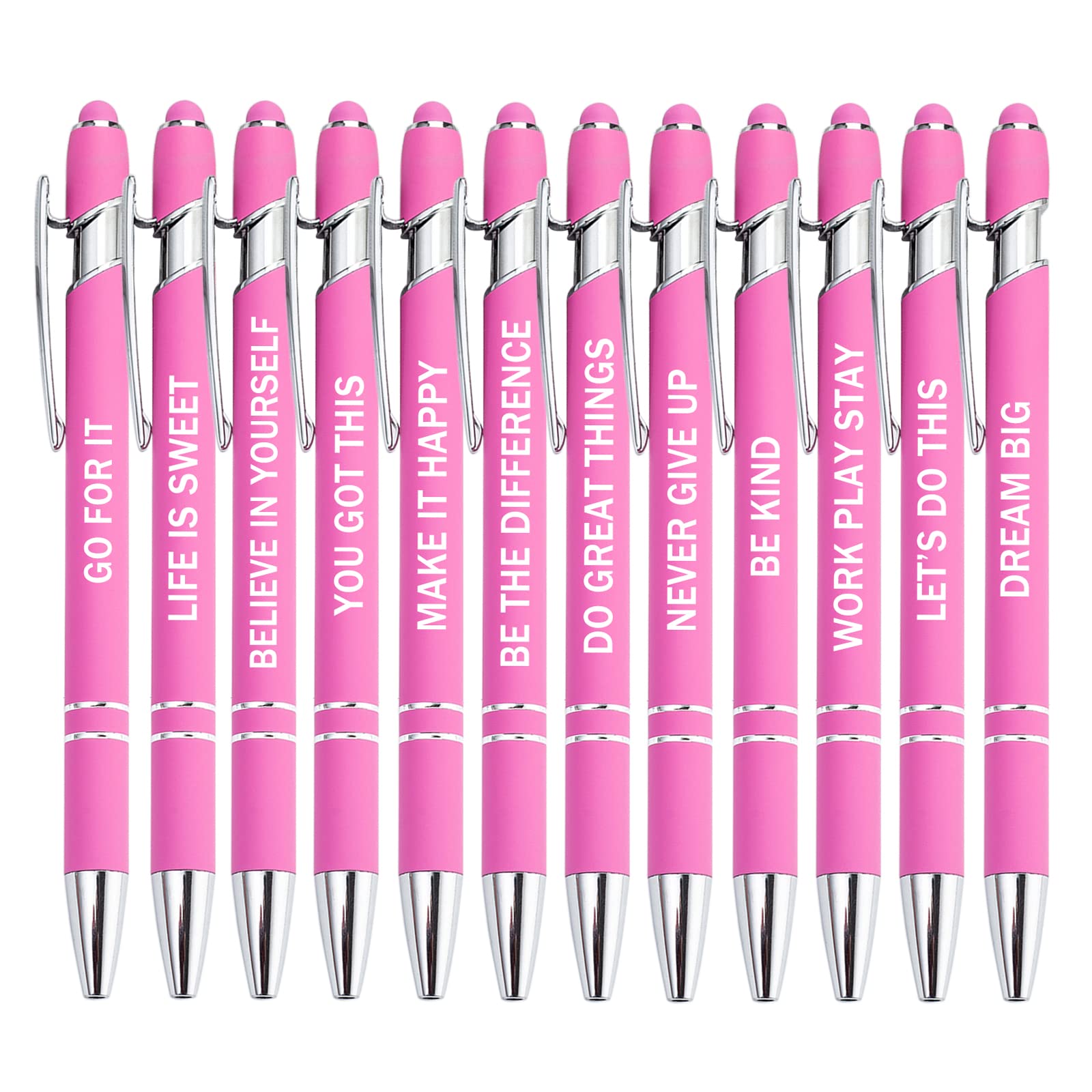 Features: Broad compatibility with many devices: Pink motivational Ballpoint pens with stylus tips is compatible with touch screen devices from a variety of brands for your convenience. They're easy to use on everything from your phone to your tablet. Beautifully refined pink design: This eye-catching pink ballpoint pens with stylus tips offers a comfortable grip and just the right amount of weight to allow you to write fluently. This pink, eye-catching metal pen will be a most popular gift, appropriate for parties, conferences, trade shows, corporate events, and a variety of other occasions. Material: metal Color: pink Size: 5.5 x 0.4 inch/ 14 x 1 cm Notes: Product size is measured by hand, please allow a little error. Please do not hit our products with hard objects to avoid damage and deformation. Due to the influence of lighting and display screen, the product pink color is subject to the real object.