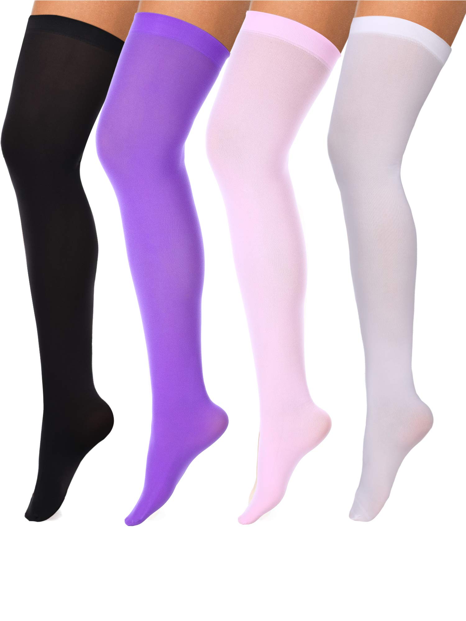 What you get: 4 pairs of thigh high stockings in various colors, enough quantity for your use and replacement; Color: as pictures shown