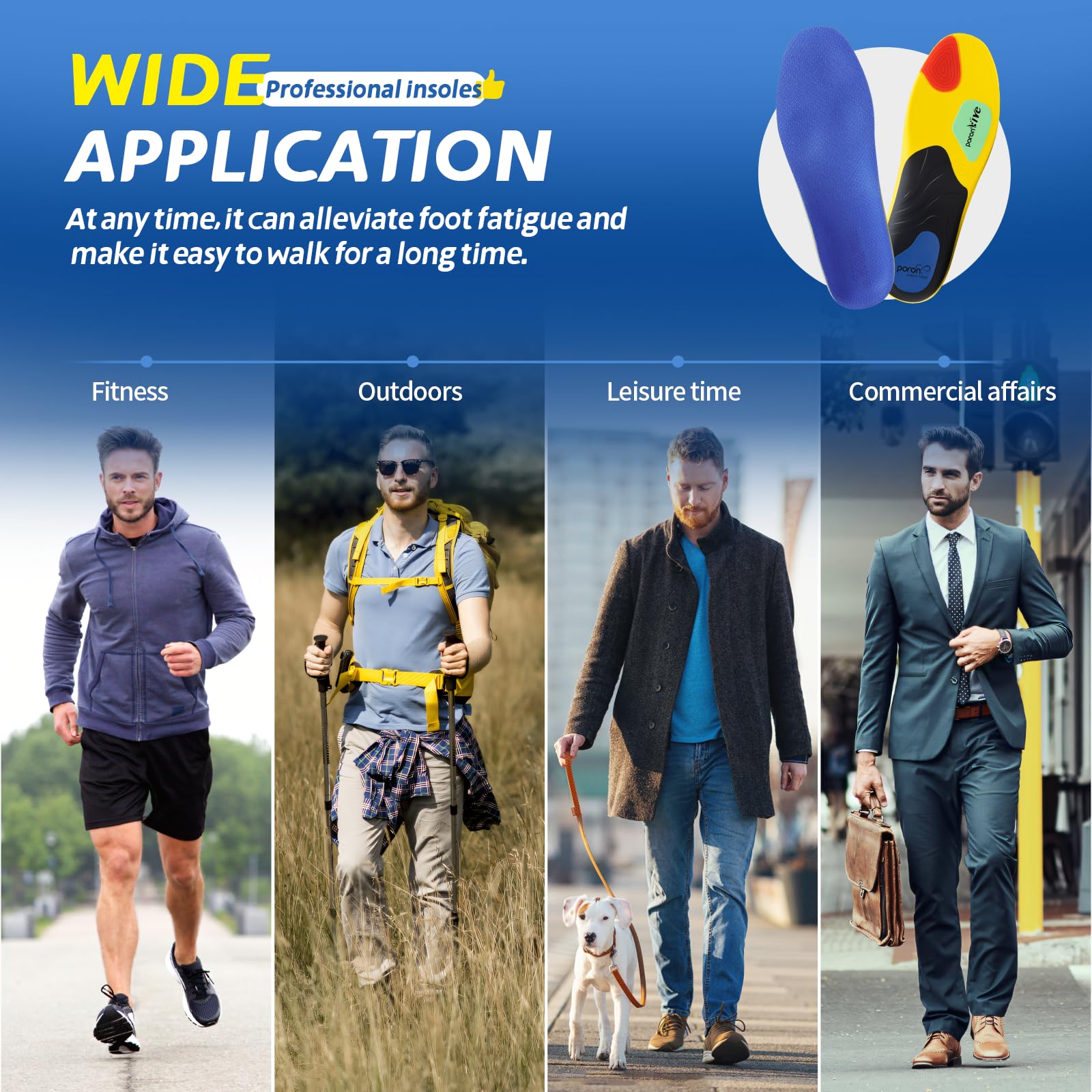 DYNAMIC FIT steady orthotic inserts:Our shoe insoles offer a dynamic fit and exceptional stability. The featuring deep U-shaped heel cups provide a secure fit for walking or running, enhancing foot support and preventing side slippage during movement for added safety.Additionally, the sole insoles' high arch support promotes an upright heel posture, reducing the risk of ankle injuries