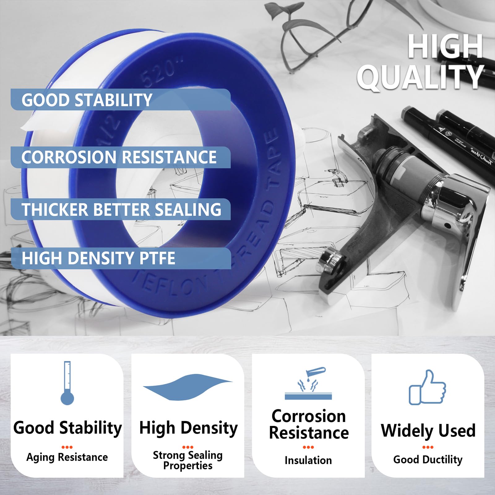 MATERIAL: This plumbers tape is made of high density PTFE material for good stability.