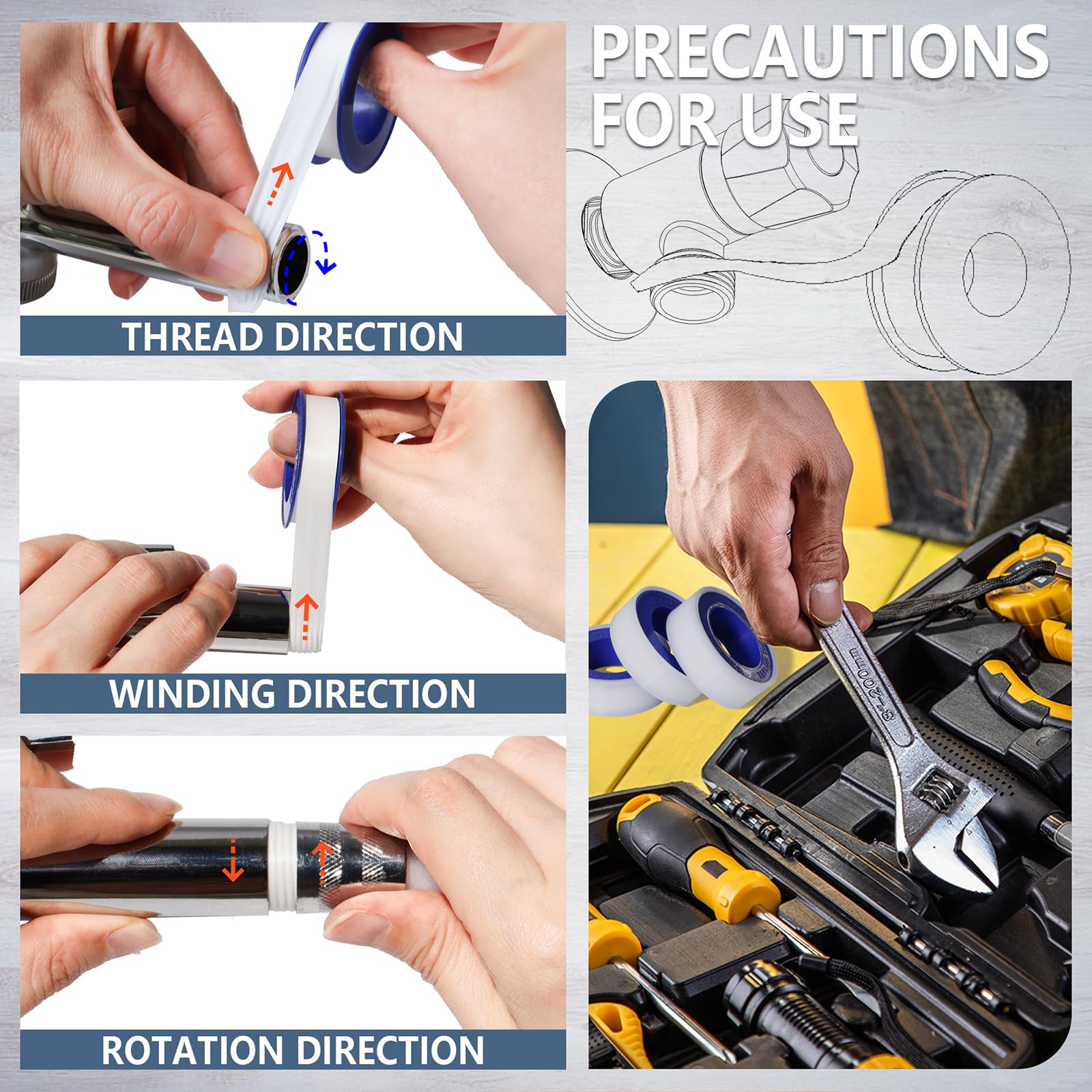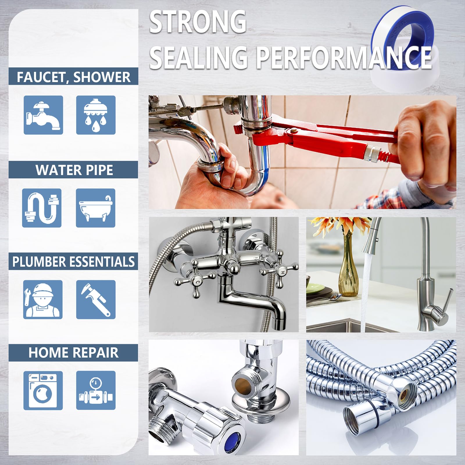 WIDELY USED: Sealing tape plumbing has strong sealing properties to prevent the leakage of water.Can be used in the sealing and connection of threaded pipes.