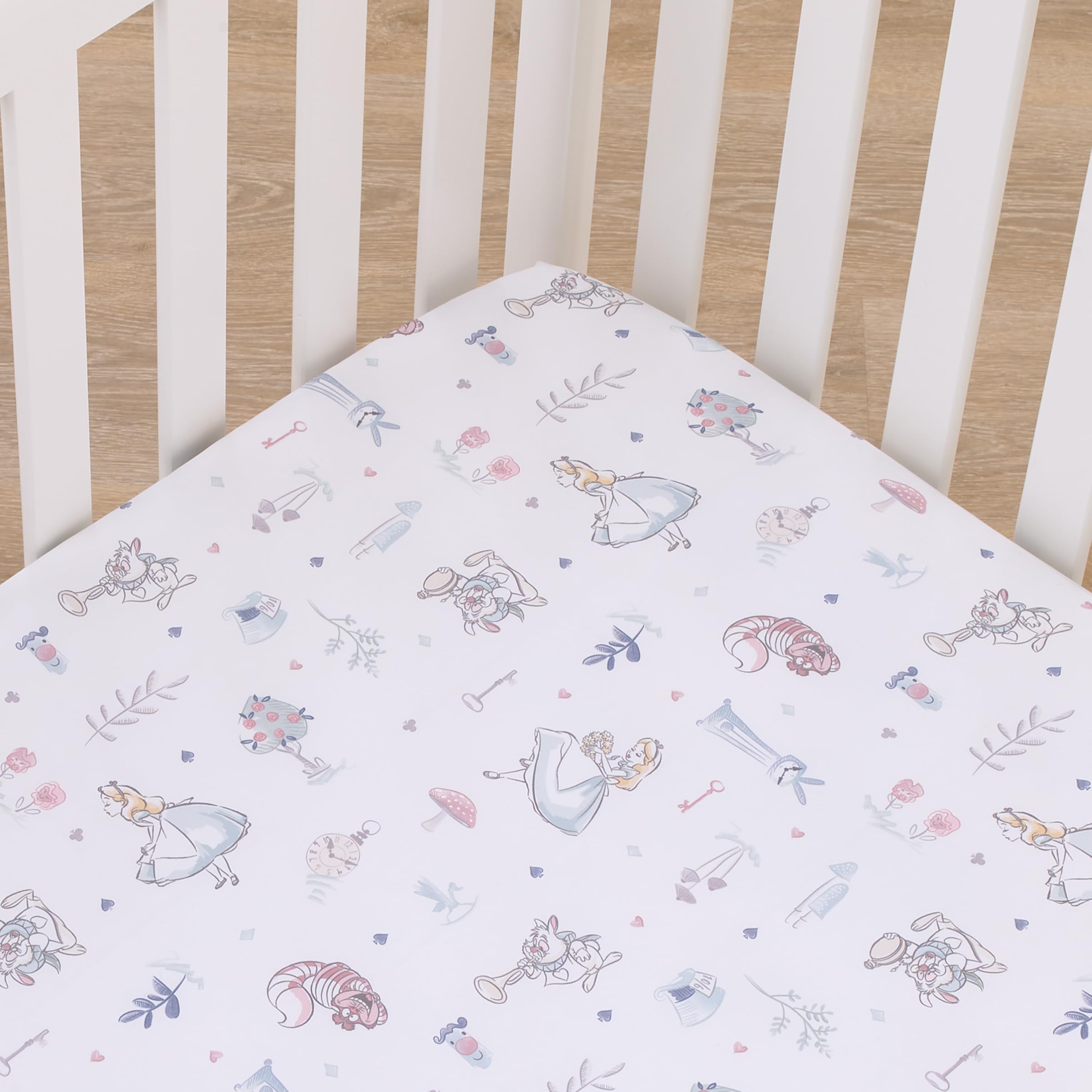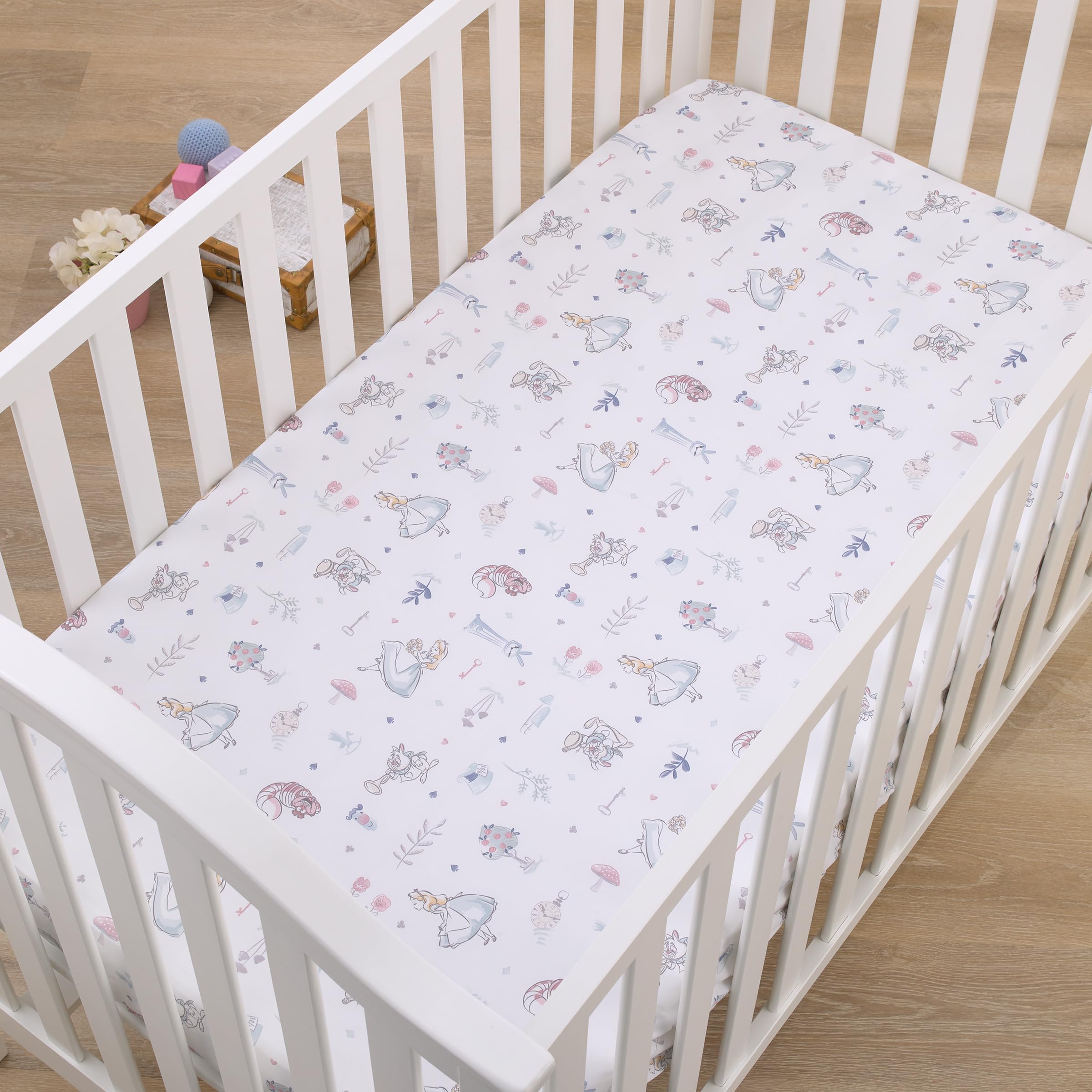 Disney's Whimsical Alice in Wonderland Fitted Crib Sheet features the White Rabbit and Cheshire Cat!