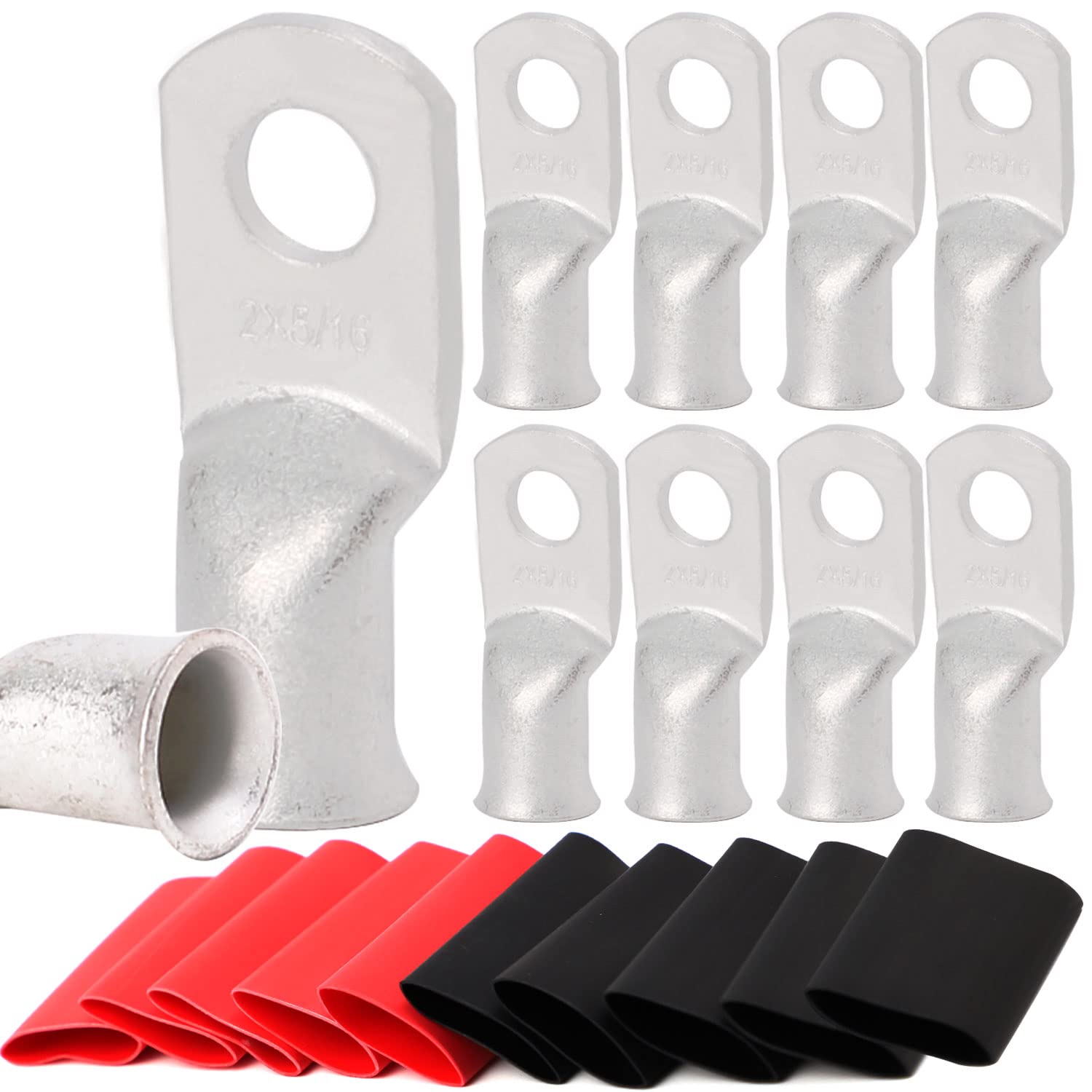 【What You Get:】 10Pcs per pack of 2 Guage (AWG) 5/16" marine grade tinned copper lugs ring terminals closed end termination ring terminals with 10 Pcs 3:1 Dual Wall Adhesive Heat Shrink Tubing Tube for your work(5pcs Black and 5pcs Red).