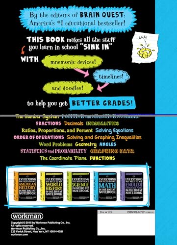 It’s the revolutionary math study guide just for middle school students from the brains behind Brain Quest. Everything You Need to Ace Math . . . covers everything to get a student over any math hump: fractions, decimals, and how to multiply and divide them; ratios, proportions, and percentages; geometry; statistics and probability; expressions and equations; and the coordinate plane and functions. The BIG FAT NOTEBOOK™ series is built on a simple and irresistible conceit—borrowing the notes from the smartest kid in class. There are five books in all, and each is the only book you need for each main subject taught in middle school: Math, Science, American History, English Language Arts, and World History. Inside the reader will find every subject’s key concepts, easily digested and summarized: Critical ideas highlighted in neon colors. Definitions explained. Doodles that illuminate tricky concepts in marker. Mnemonics for memorable shortcuts. And quizzes to recap it all. The BIG FAT NOTEBOOKS meet Common Core State Standards, Next Generation Science Standards, and state history standards, and are vetted by National and State Teacher of the Year Award–winning teachers. They make learning fun and are the perfect next step for every kid who grew up on Brain Quest.