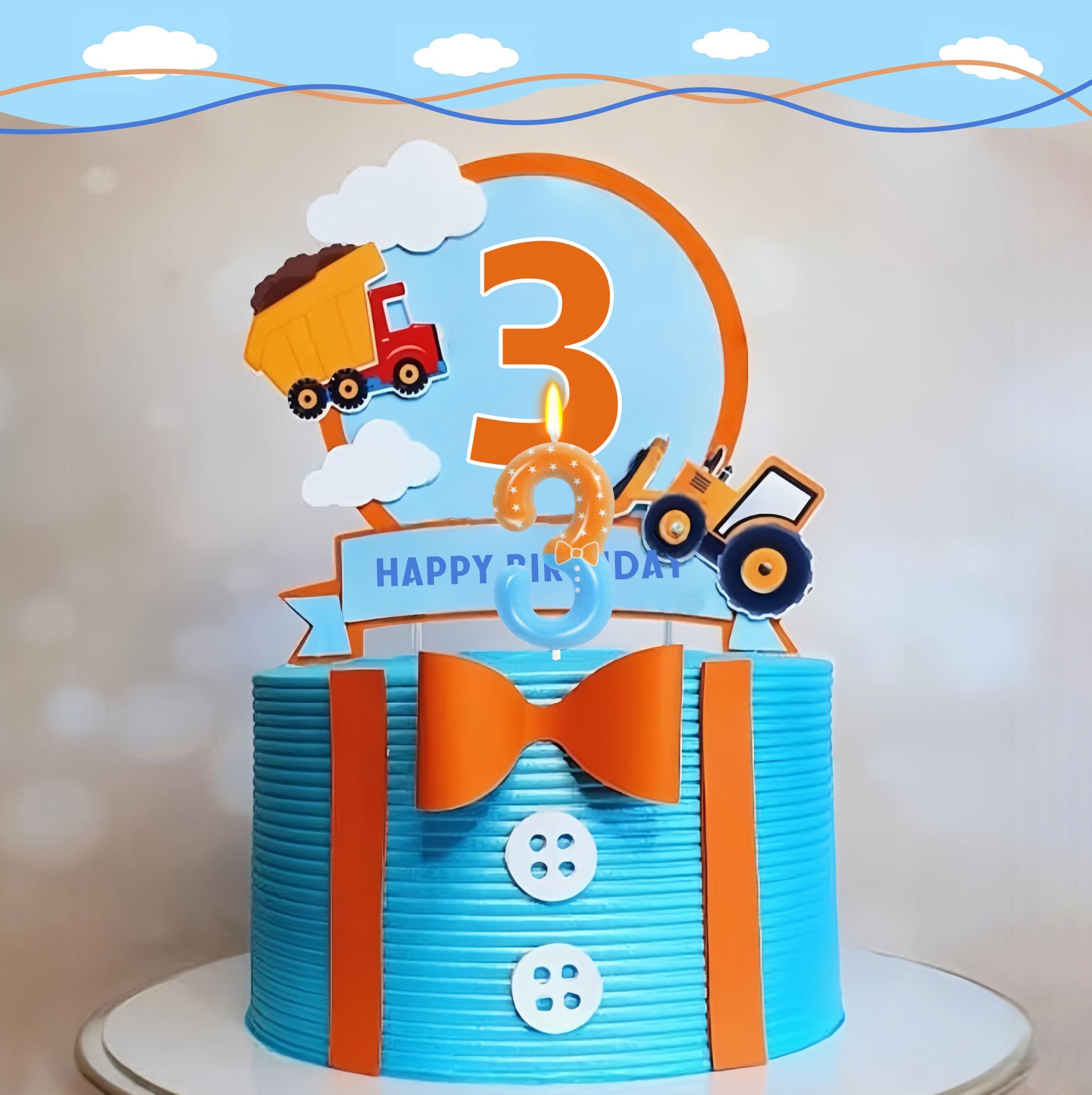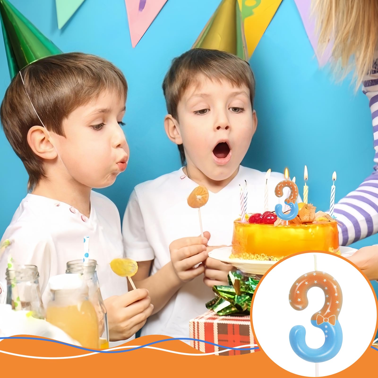 Product Design: Vibrant orange & blue number candles with playful star patterns! Perfect for fun-filled cartoon birthday celebrations